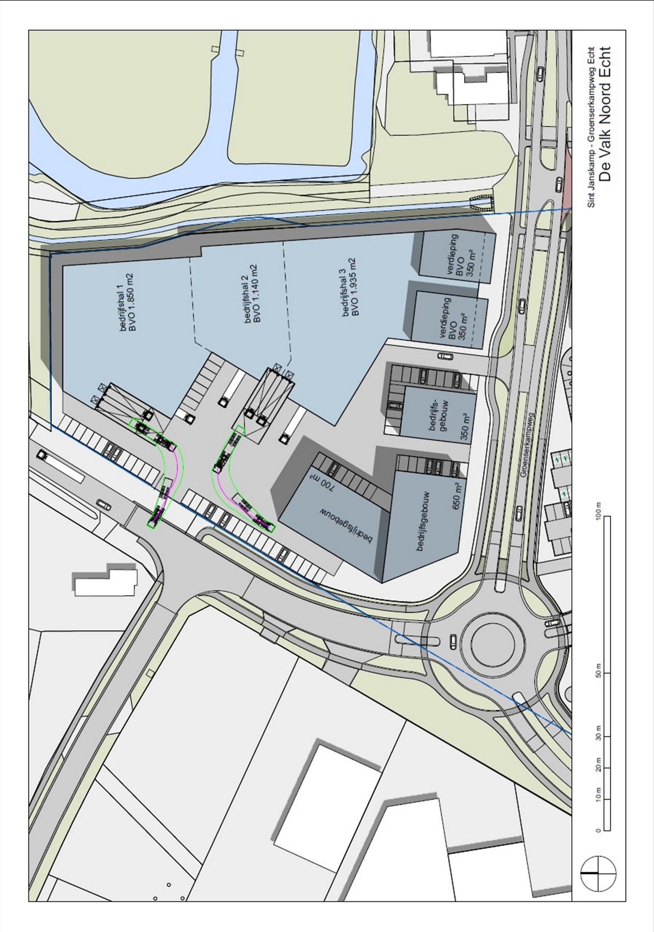 In het bovenste gebied van De Valk Noord, zijde Sint Janskamp, is ruimte voor grootschalige bebouwing van 1.000 tot 7.000m2. Dit is ideaal voor ondernemers die op zoek zijn naar o.a. kantoor -en/of opslagruimte of groothandel. Bedrijven van maximaal 3.1* zijn hier toegestaan.