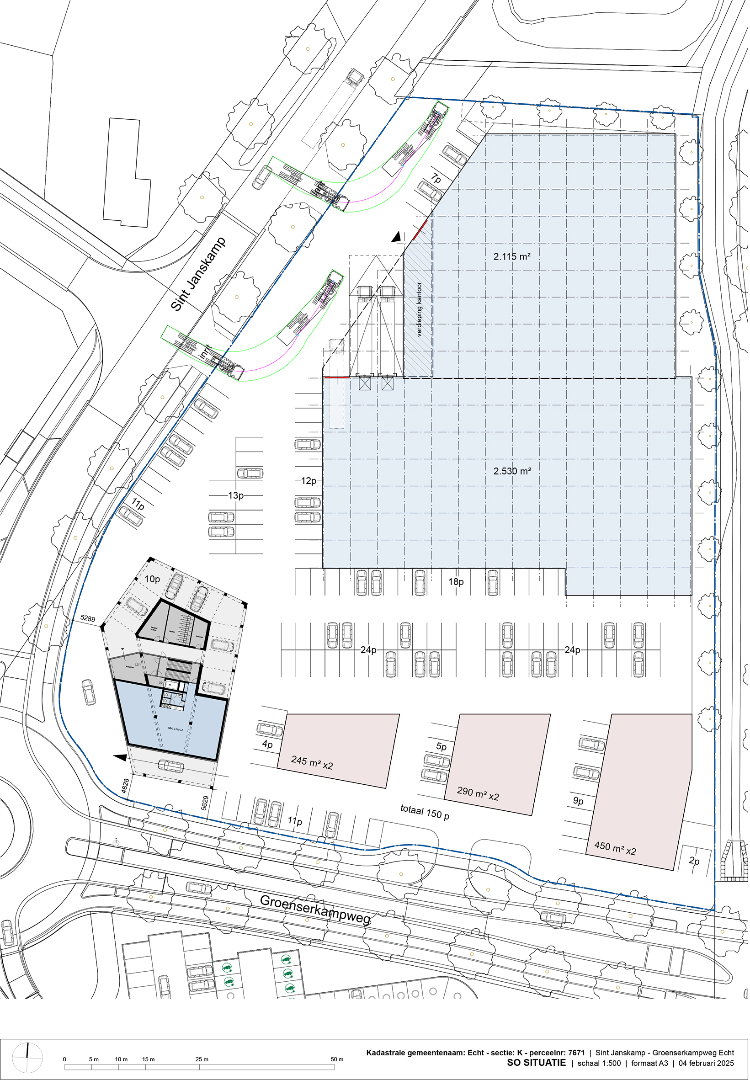 De bebouwing langs de Groenserkampweg benadrukt de entree van het centrum van Echt . De bebouwing maakt qua architectonisch beeld onderdeel uit van het ensemble van de bebouwing aan de overzijde: Foodmarkt, Galerij, Loods 14 en Menghal, waarbij de Groenserkampweg als een groene laan het gebied doordsnijdt. Op de hoek met de Sint-Janskamp is ruimte voor een bebouwingsaccent dat de hoeksituatie benadrukt. De gebouwen zijn bereikbaar via een gezamenlijke ontsluiting aan de Groenserkampweg.