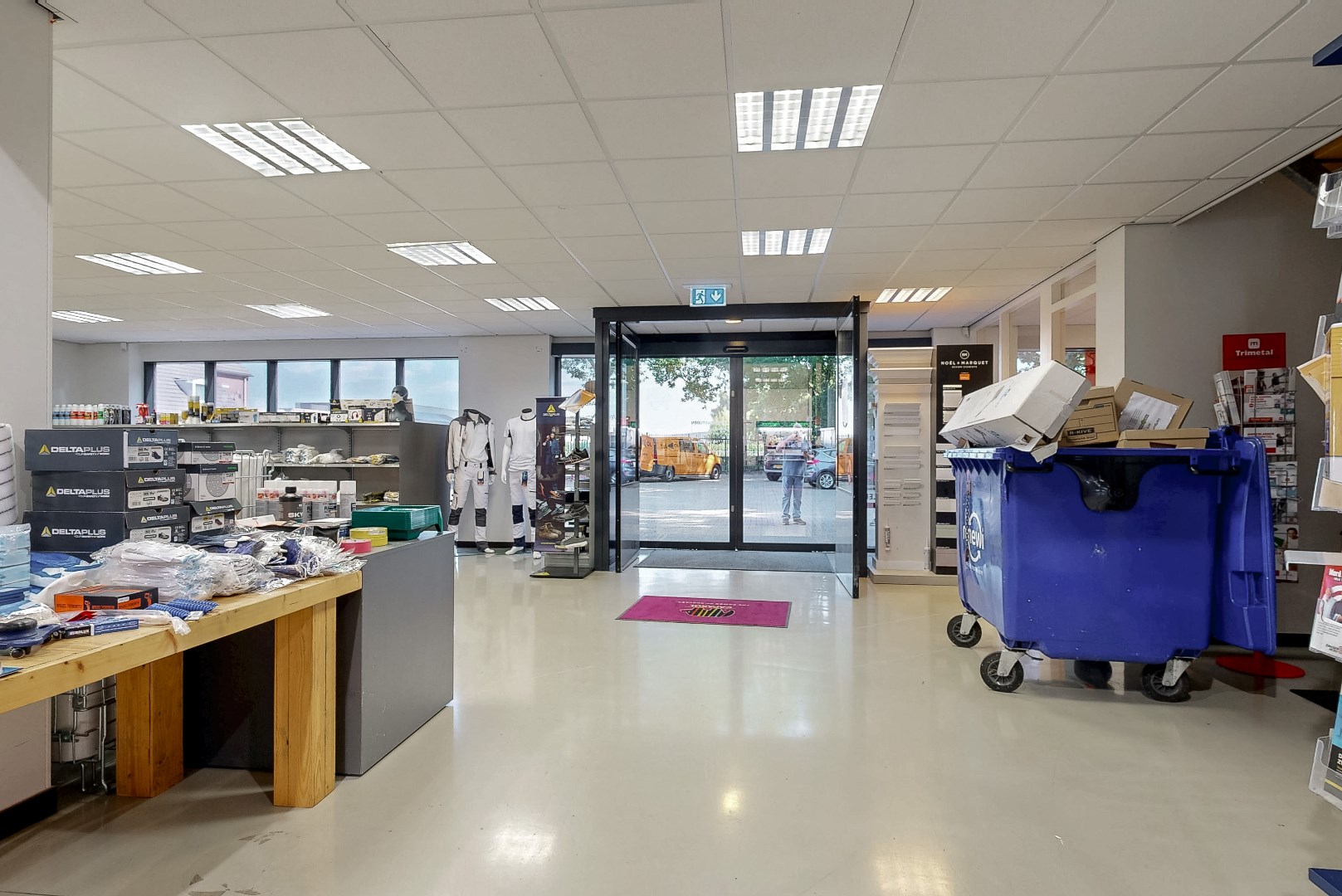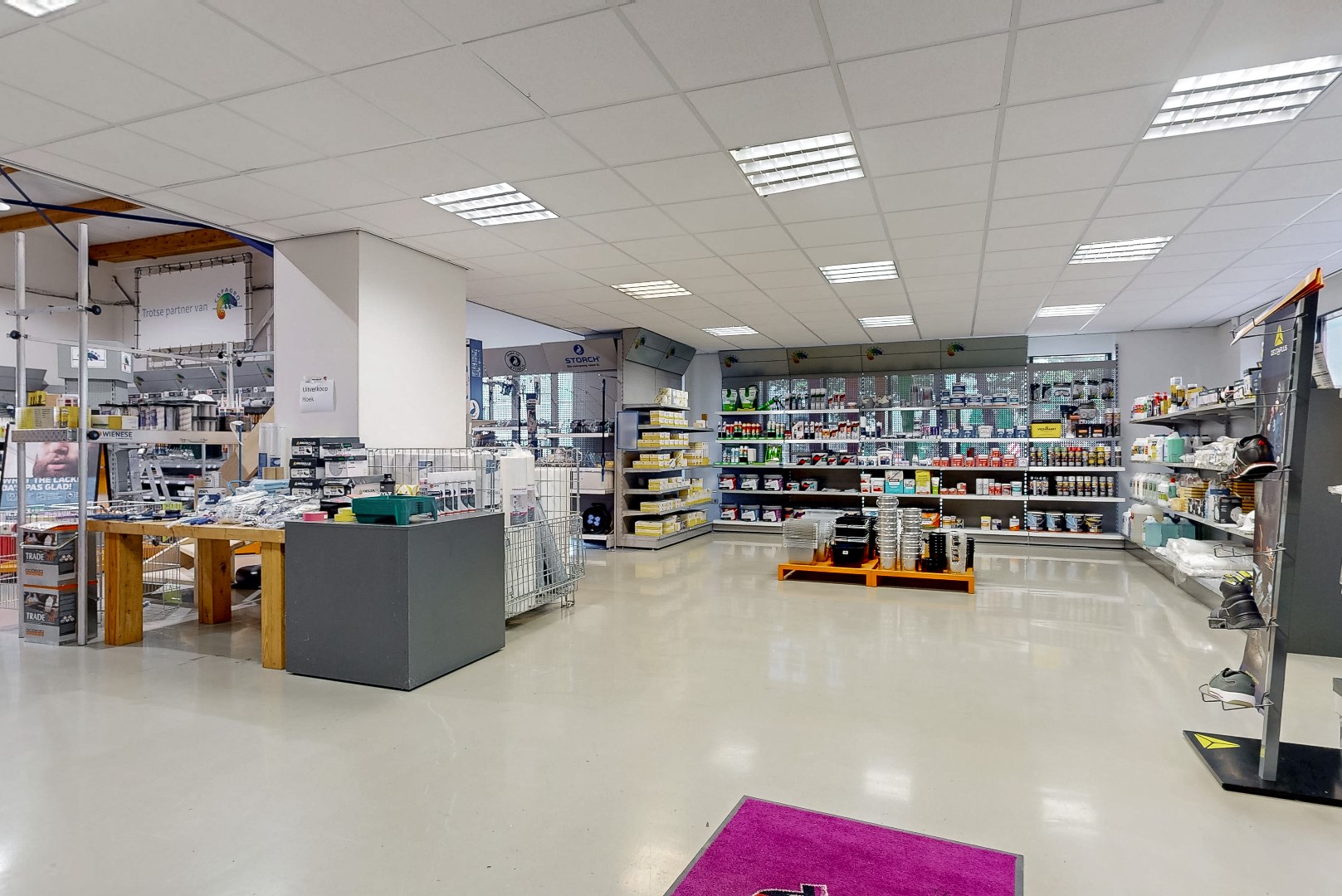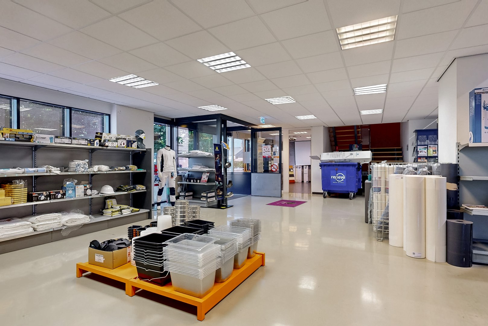 Entree tot ruime showroom, keuken en magazijn, totaal ca. 572 m².