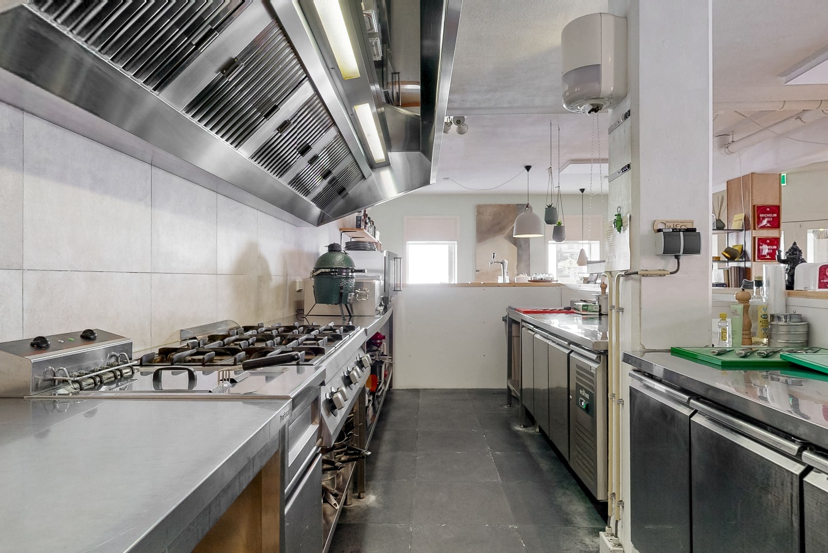 Centraal in het restaurant bevindt zich de open keuken, volledig ingericht met professionele apparatuur en beschikbaar ter overname. Gasten kunnen meekijken hoe de gerechten met vakmanschap worden bereid.
