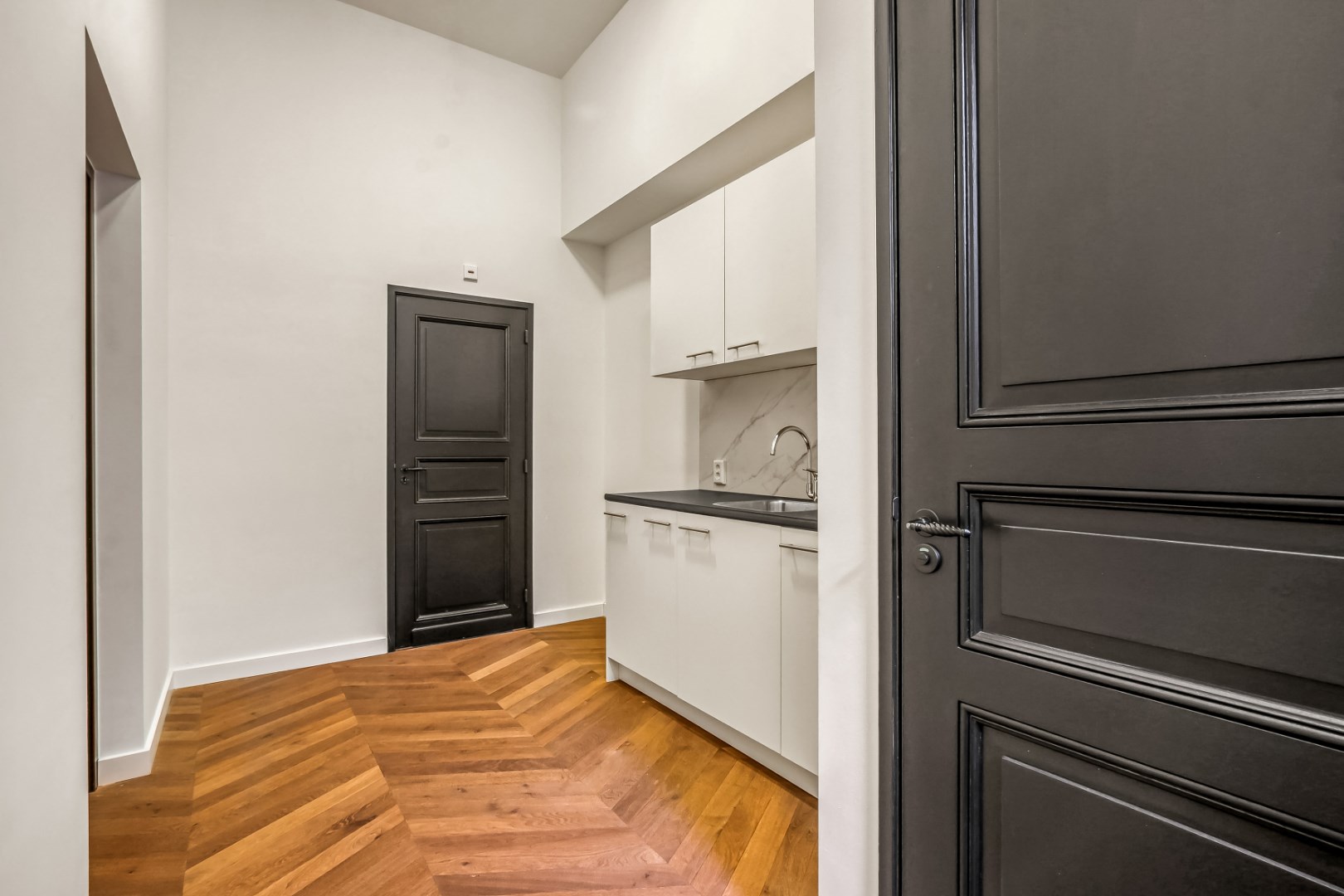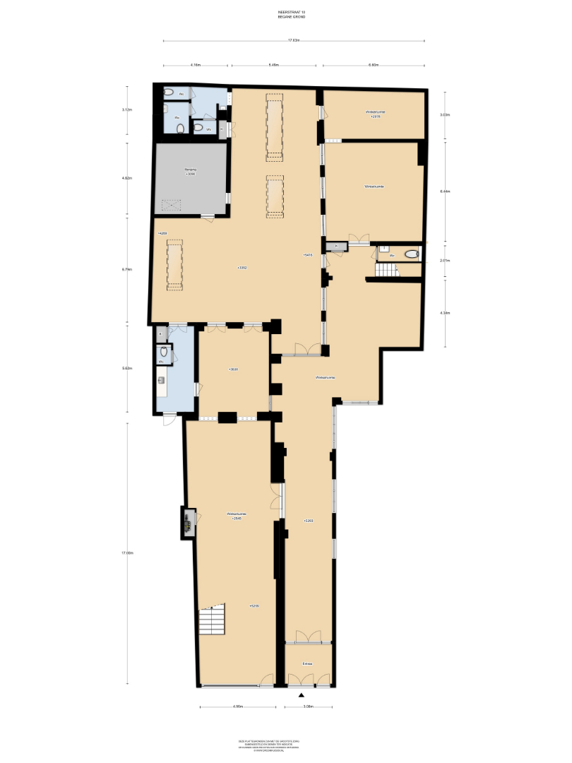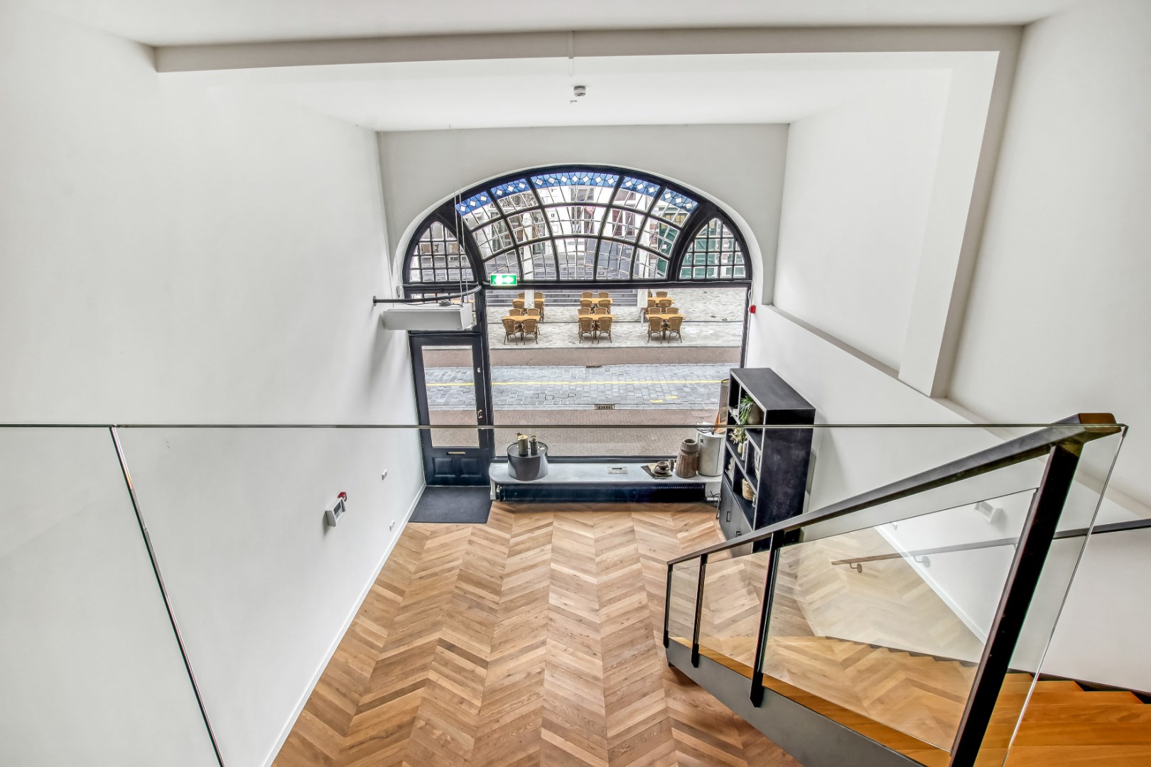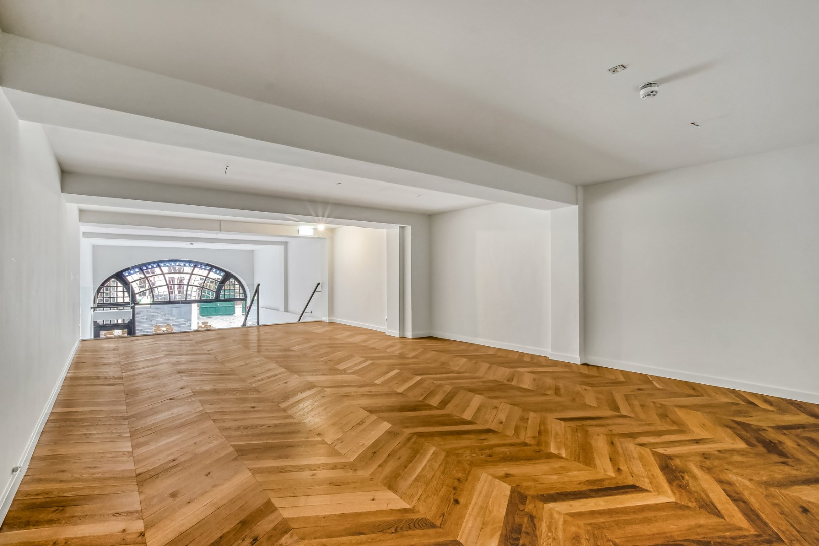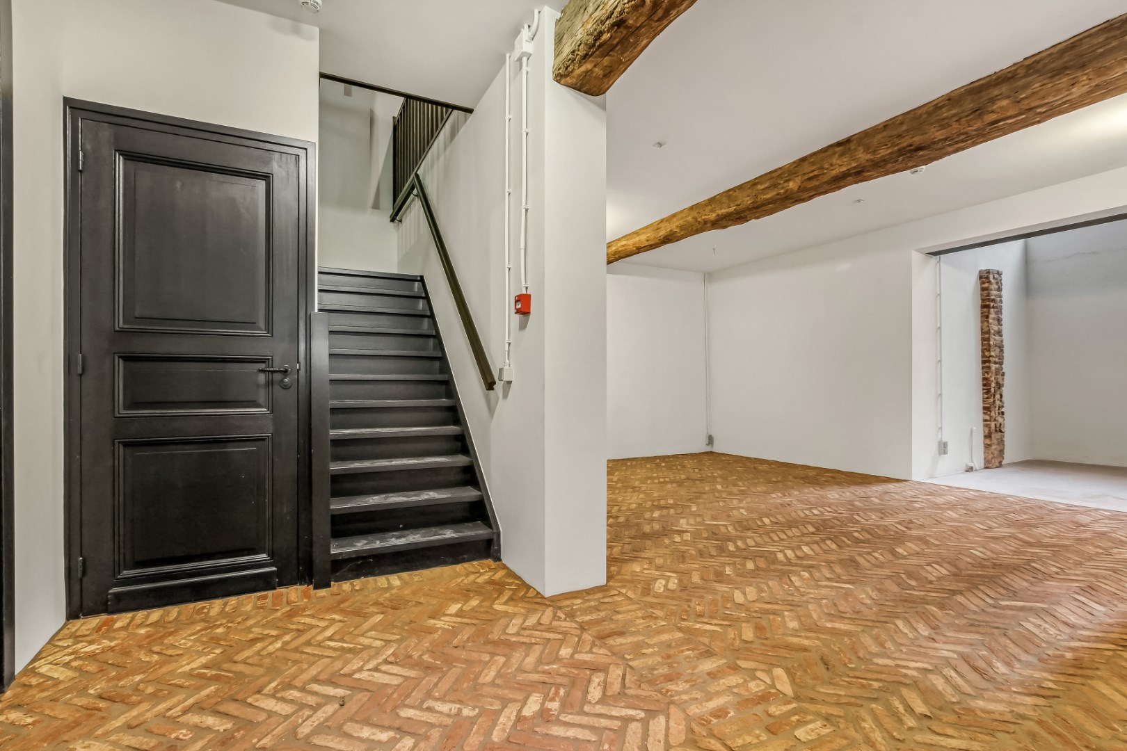 Prachtige statige entree met toegang tot de winkelruimte. Aan de voorkant bevindt zich een groot raam welke ideaal is voor het gebruik als etalage. Entresol van ± 56 m². De winkelruimte is ingedeeld in diverse grote ruimtes. Kitchenette met bergkast en toilet. Portaal met toiletruimte en toegang tot de verdieping van ± 100 m² welke kan dienen als opslagruimte of winkelruimte. Bergruimte van ± 20 m². 3 Toiletten met fonteintje.