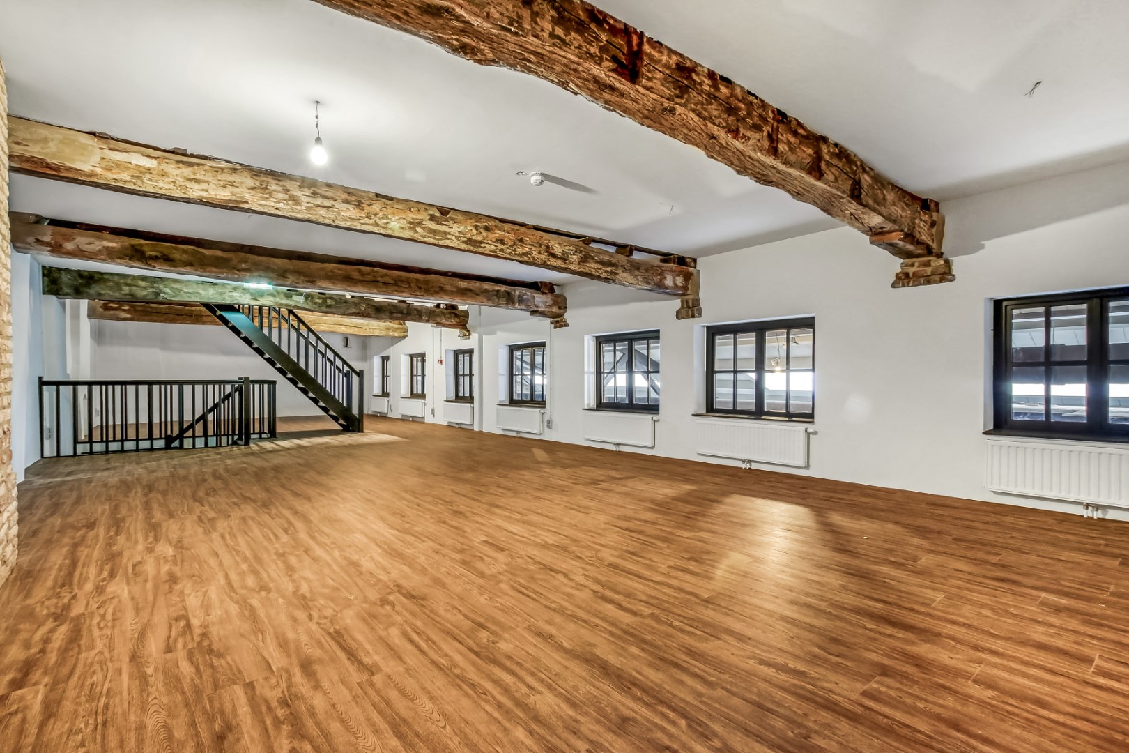 Deels houtenvloer, deels betonvloer en deels stenenvloer
