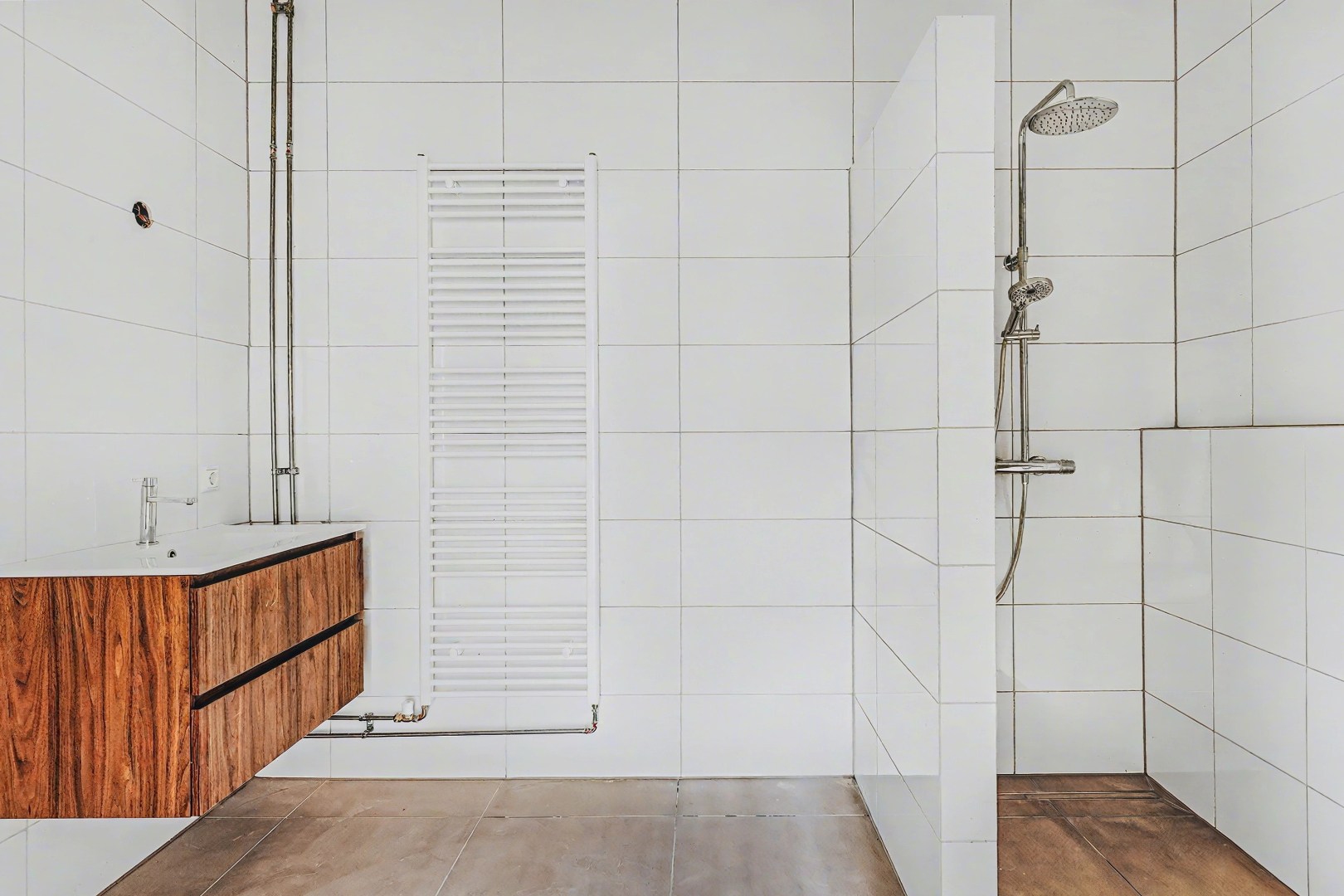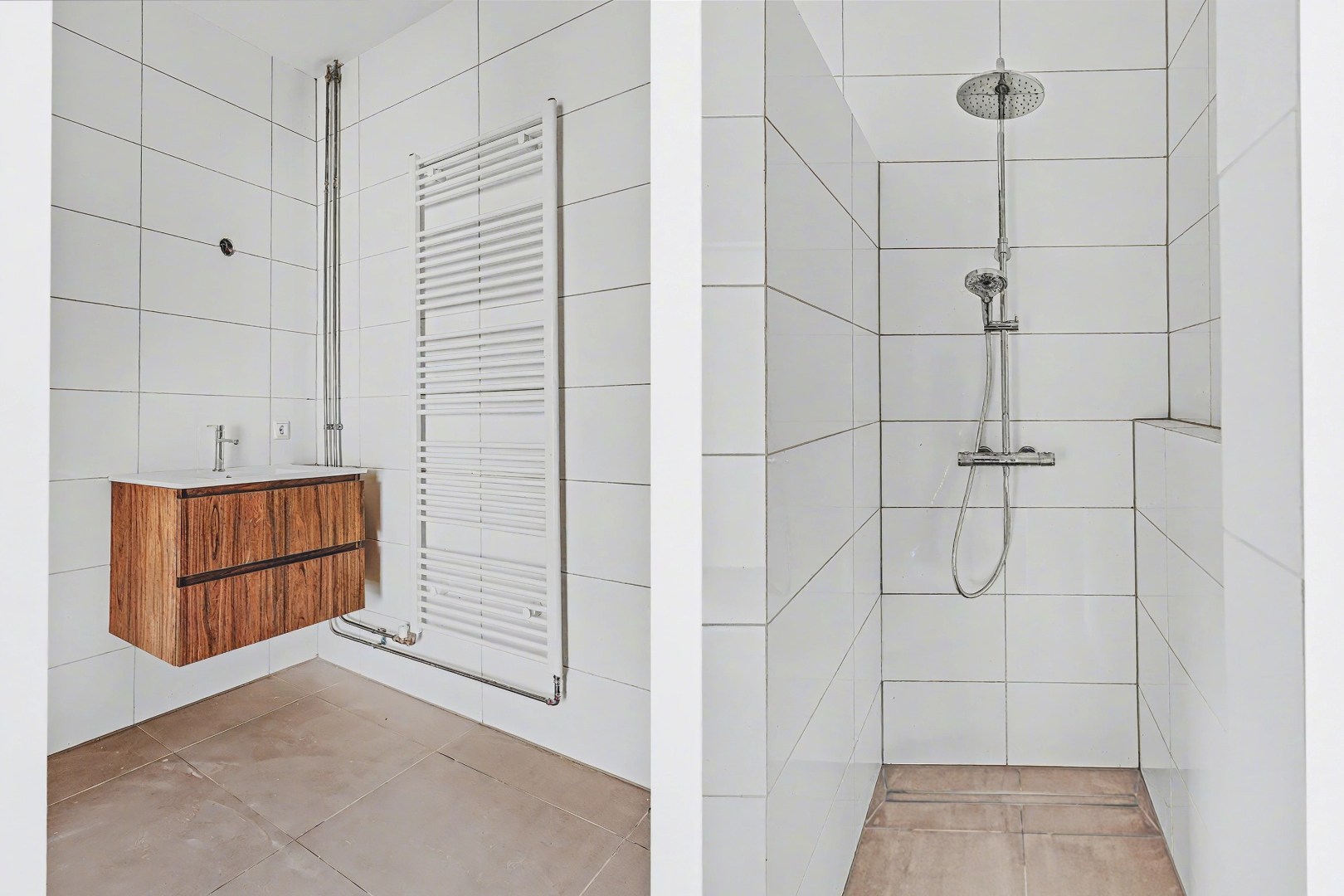 De badkamer is recent geheel gerenoveerd en vernieuwd. Deze is bereikbaar vanuit de hal en voorzien van de gebruikelijke sanitaire voorzieningen.