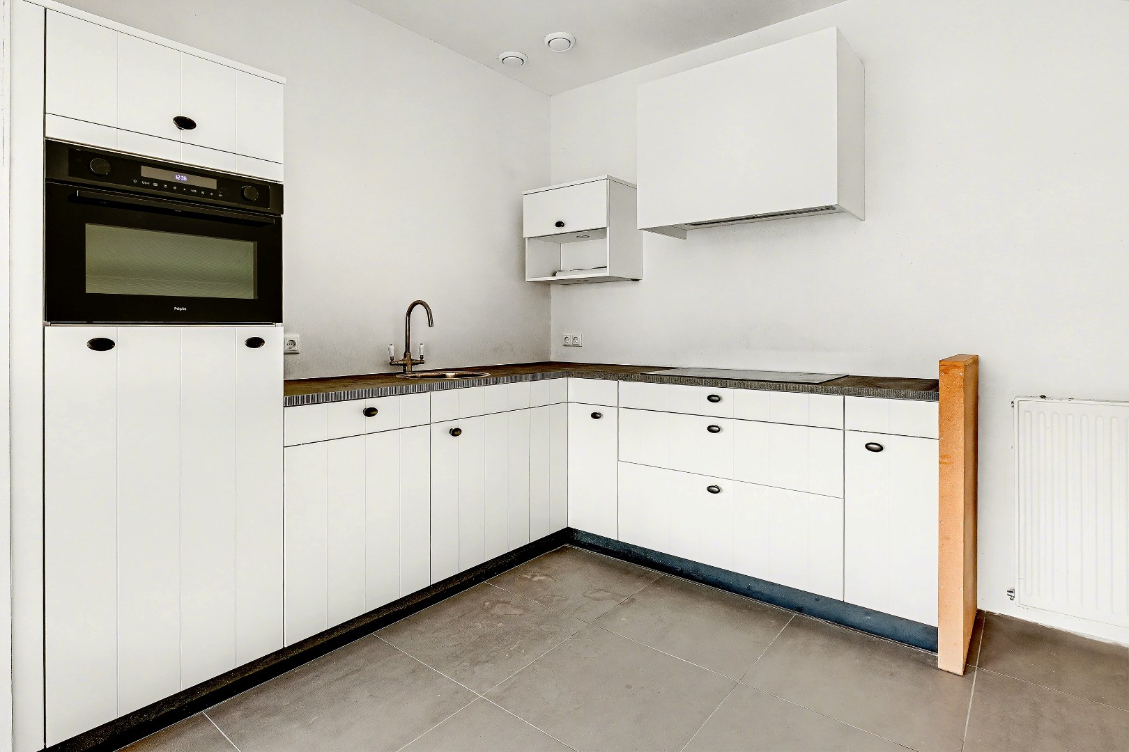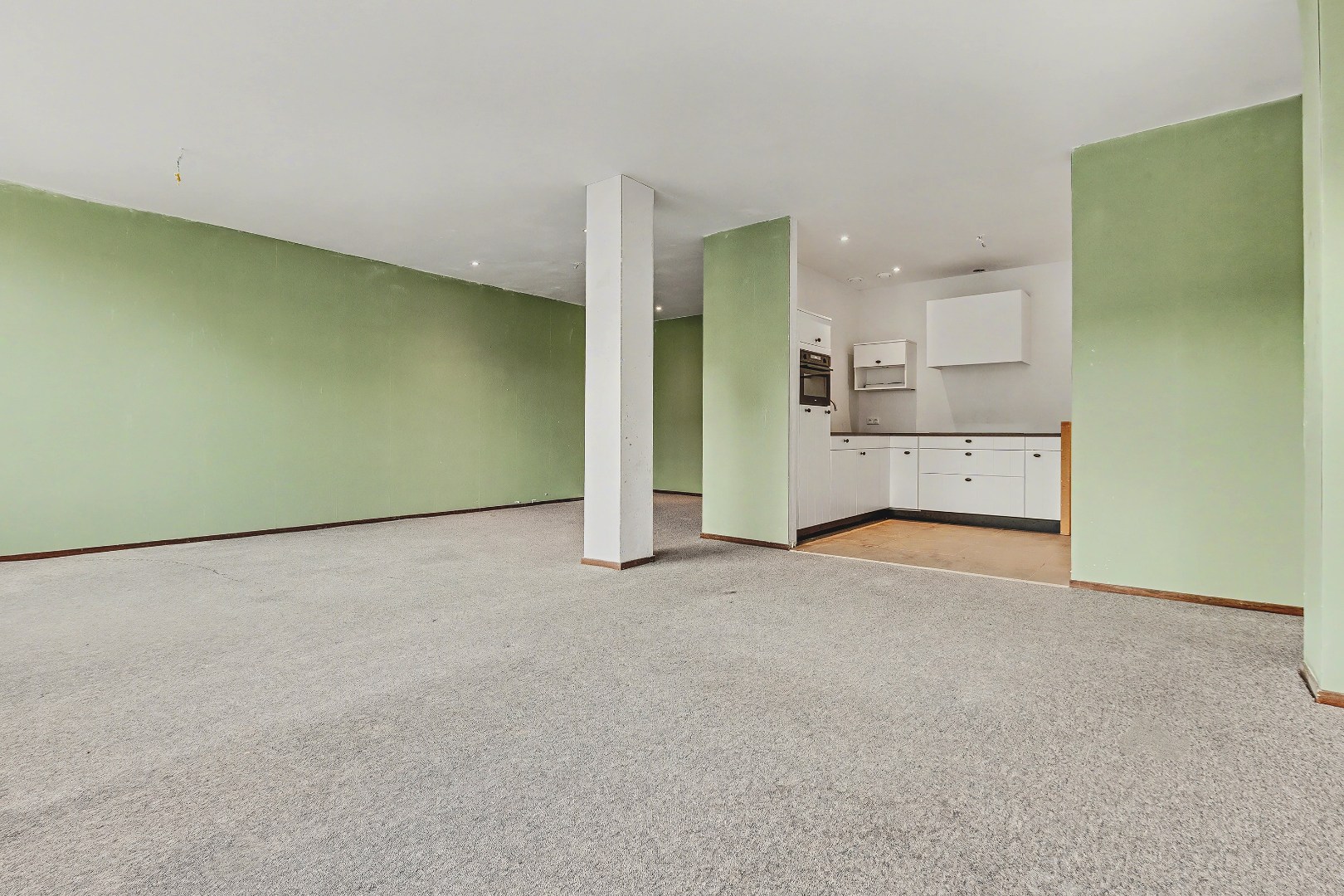 De woonkamer is ruim en biedt voldoende plaats voor een comfortabele zithoek en eethoek. Aangrenzend bevindt zich de halfopen keuken, recentelijk gerenoveerd en vernieuwd, die praktisch is ingedeeld en in verbinding staat met de leefruimte.