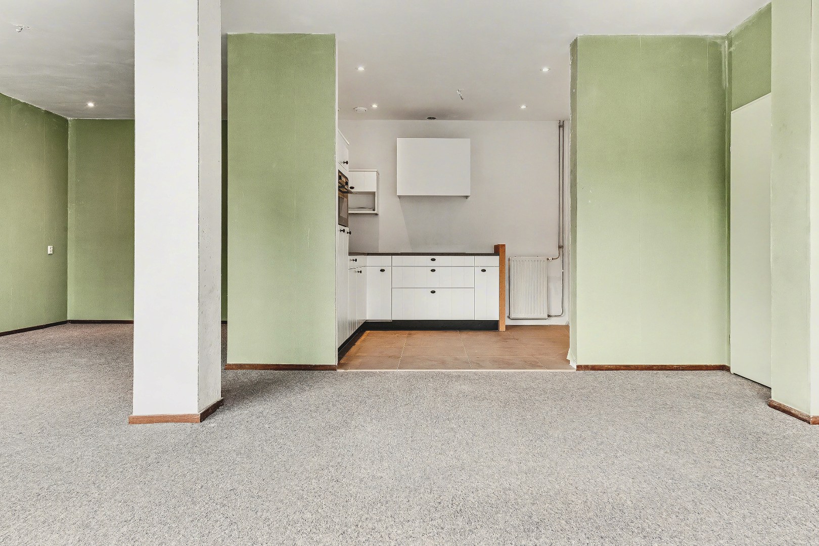 Via de gezamenlijke entree bereik je het appartement op de begane grond. Bij binnenkomst kom je in de entree, die toegang biedt tot de woonkamer en de halfopen keuken.
