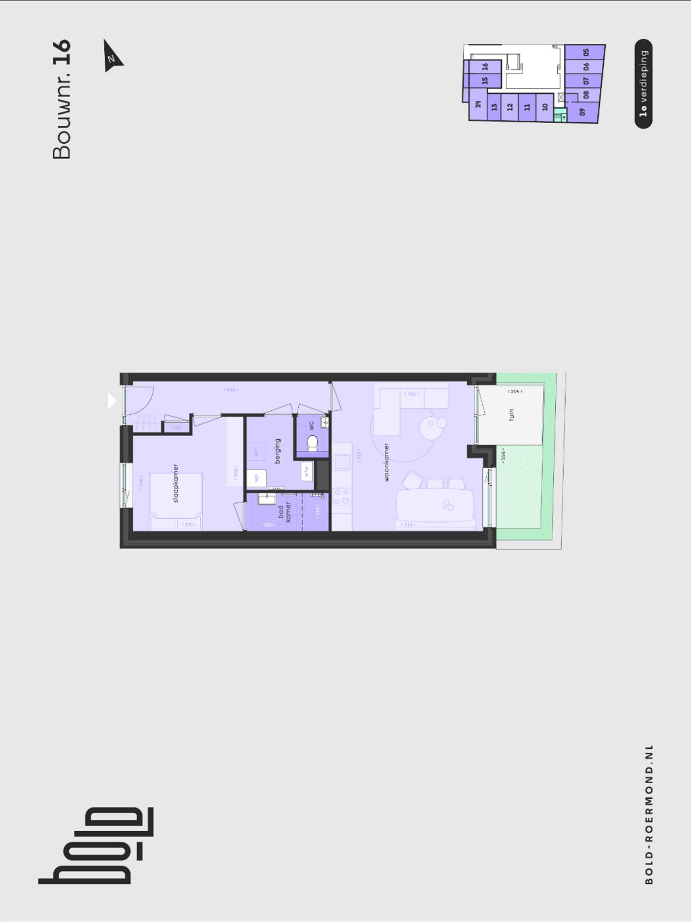 Interesse gewekt?! Meld je aan via de website, maak een account aan en selecteer je voorkeuren. Bold; robuust en modern. Op de plek van het voormalige ING kantoor in Roermond herrijst een nieuw markant icoon. Het bestaande gebouw maakt plaats voor een solide en eenduidig appartementencomplex, pal naast het stationsplein. Met 55 moderne en betaalbare appartementen biedt Bold niet alleen een thuis, maar een statement van comfort en kwaliteit in het hart van Roermond. De appartementen beschikken over alle moderne gemakken, zoals een optimale isolatie, vloerverwarming, een warmtepomp en een WarmteTerugWin-installatie (WTW). Een bruisende stedelijke oase. Op korte afstand van de locatie liggen veel belangrijke voorzieningen. Het centrum van Roermond, met zijn rijke geschiedenis en bruisende handelsgeest, ligt binnen handbereik en nodigt uit tot ontdekking. Een perfecte uitvalsbasis voor zowel de actieve stedeling als de rustzoekende thuiswerker. Moderne gemakken en een hoogwaardige leefomgeving.