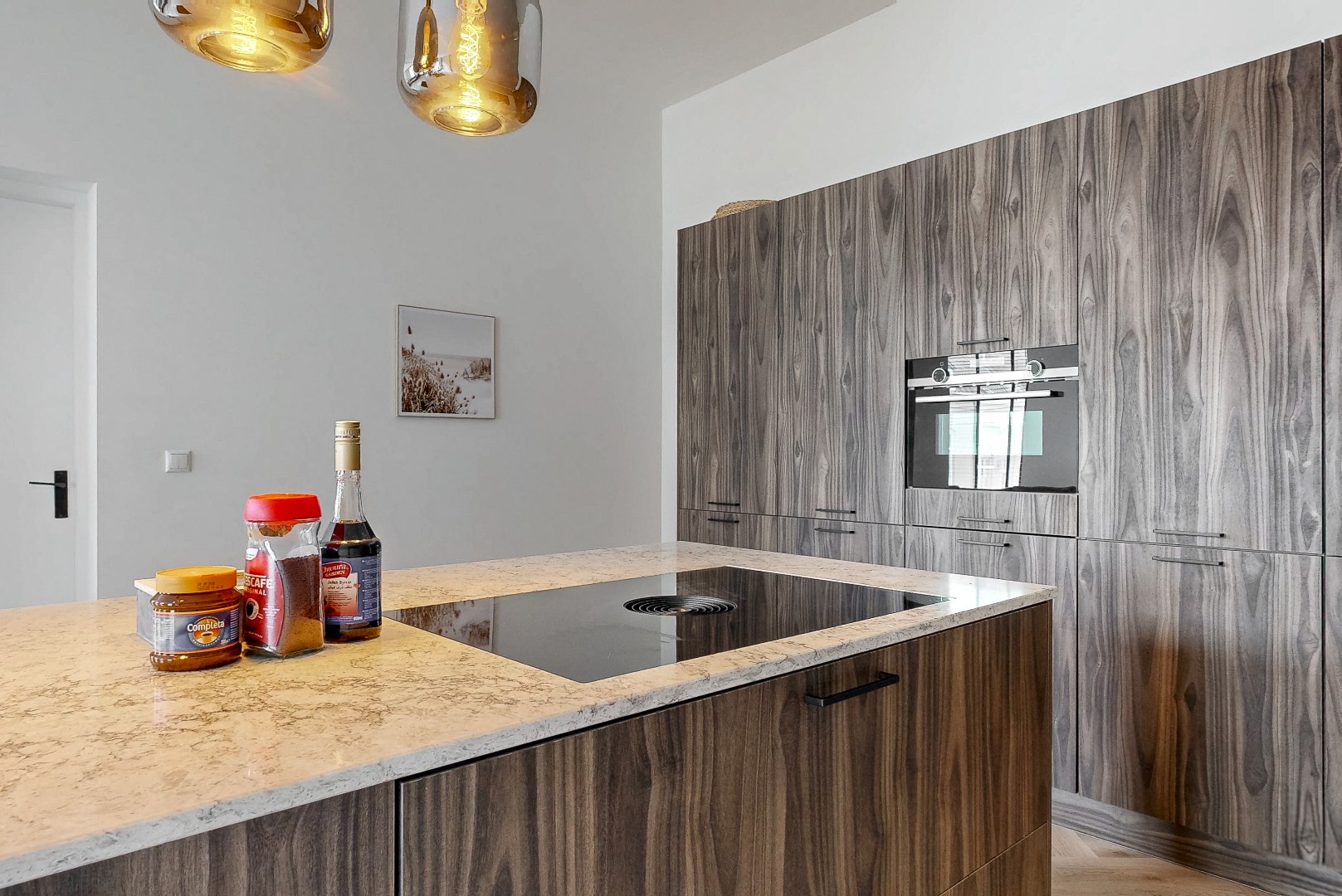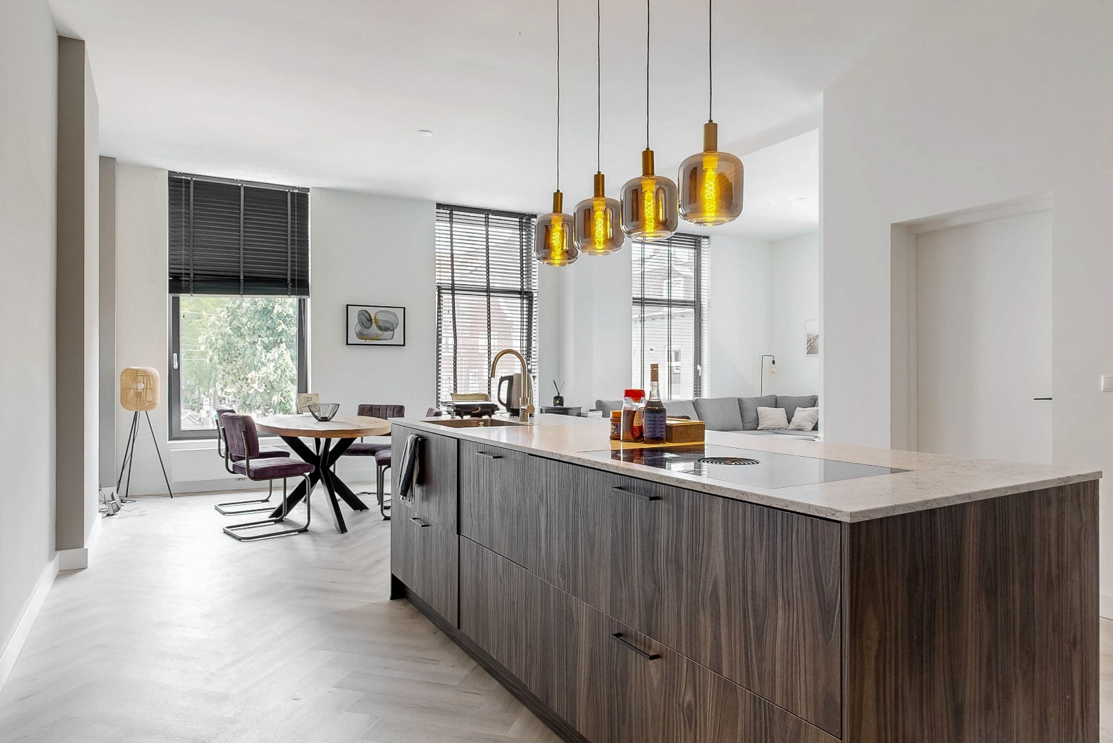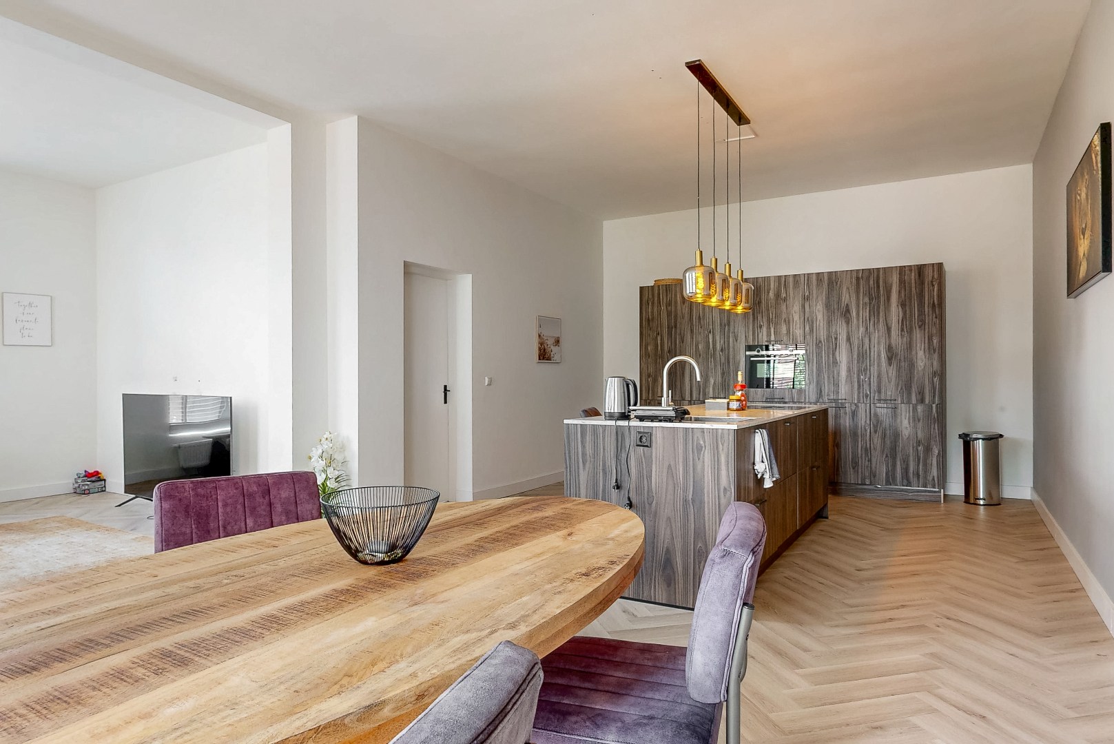 In de moderne open keuken met kookeiland wordt koken een feestje. Er is voldoende werkruimte om uitgebreid te kokkerellen en op de inductiekookplaat met Bora downdraft afzuigsysteem bereid je met gemak de lekkerste gerechten. Bovendien is er ruim plaats om een eethoek te creëren. Zo kun je na het koken gezellig samen tafelen met vrienden en familie.