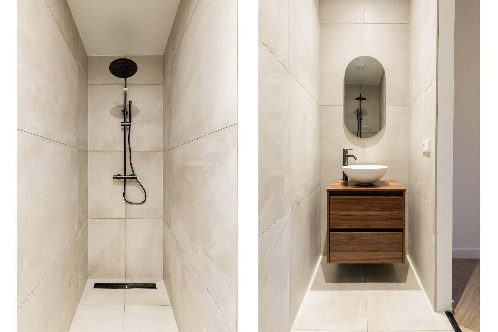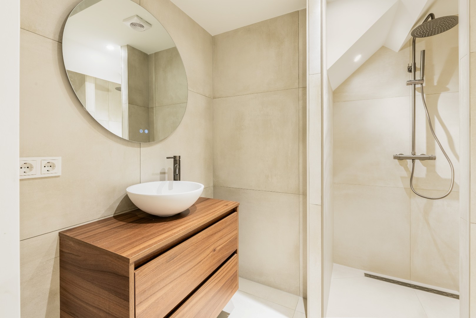 Beide badkamers zijn luxe uitgevoerd en bieden optimaal gemak. De ensuite badkamer beschikt over een moderne inloopdouche en een stijlvol wastafelmeubel. De tweede, ruimere badkamer is eveneens voorzien van een inloopdouche en wastafelmeubel. Het tweede toilet bevindt zich apart.