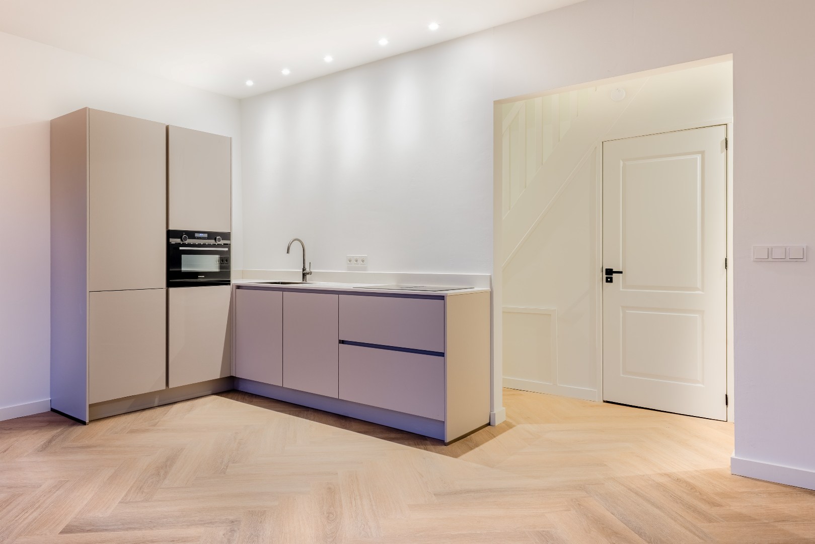 De moderne open keuken is volledig uitgerust met onder andere een inductiekookplaat met geïntegreerde afzuiging, een vaatwasser, koel-vriescombinatie, oven, ruime spoelbak en voldoende kastruimte. Of je nu snel iets wilt bereiden of uitgebreid wilt koken: deze keuken maakt het extra plezierig.