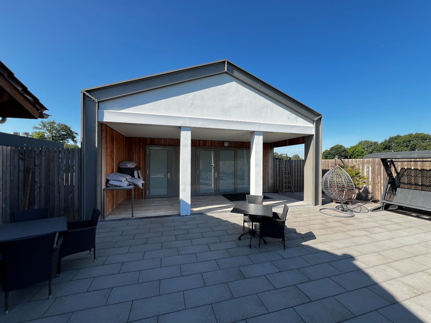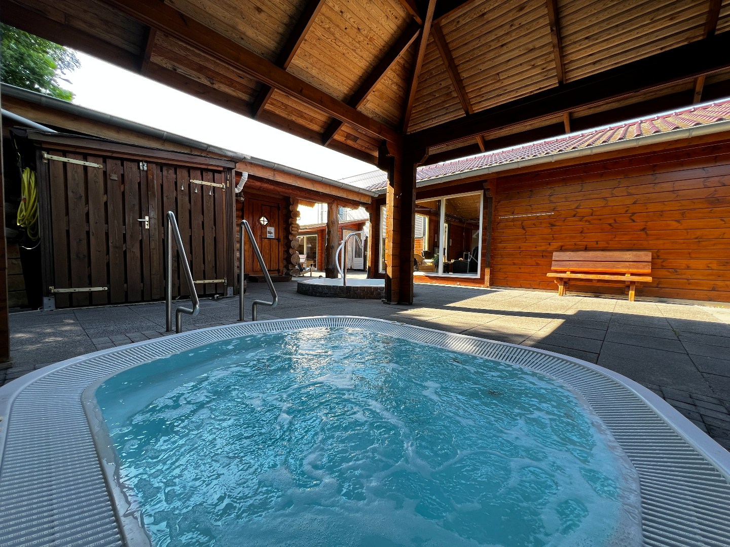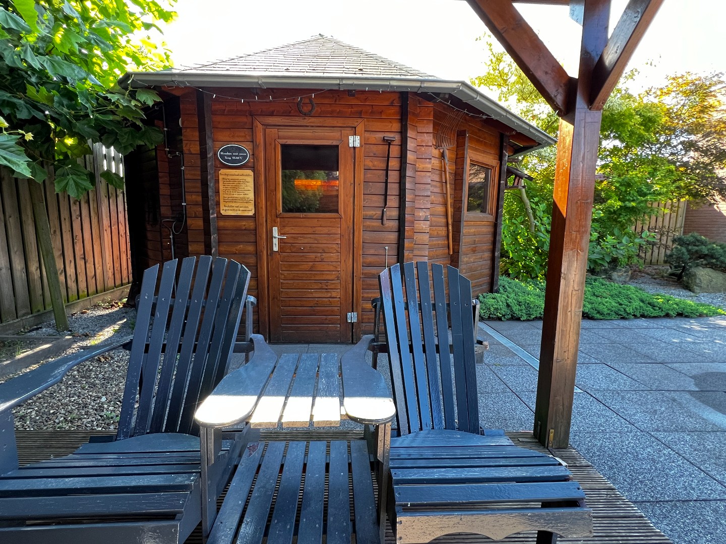 Rondom het wellnesscentrum ligt een fraai aangelegde tuin die rust en privacy garandeert. In deze buitenruimte kunnen gasten ontspannen in de wellnesstuin of op de ligweide en genieten van bijzondere faciliteiten zoals een wijnvatsauna, een whirlpool, een dompelbad en een banja sauna. Voor wie behoefte heeft aan extra rust en comfort is er bovendien een lounge- en slaapruimte waar in alle stilte kan worden ontspannen. De buitenruimte biedt daarnaast volop mogelijkheden voor uitbreiding van behandelfaciliteiten of het creëren van een meditatietuin of extra ontspanningszones. Dankzij de ruime parkeergelegenheid is het wellnesscentrum bovendien uitstekend toegankelijk voor bezoekers.