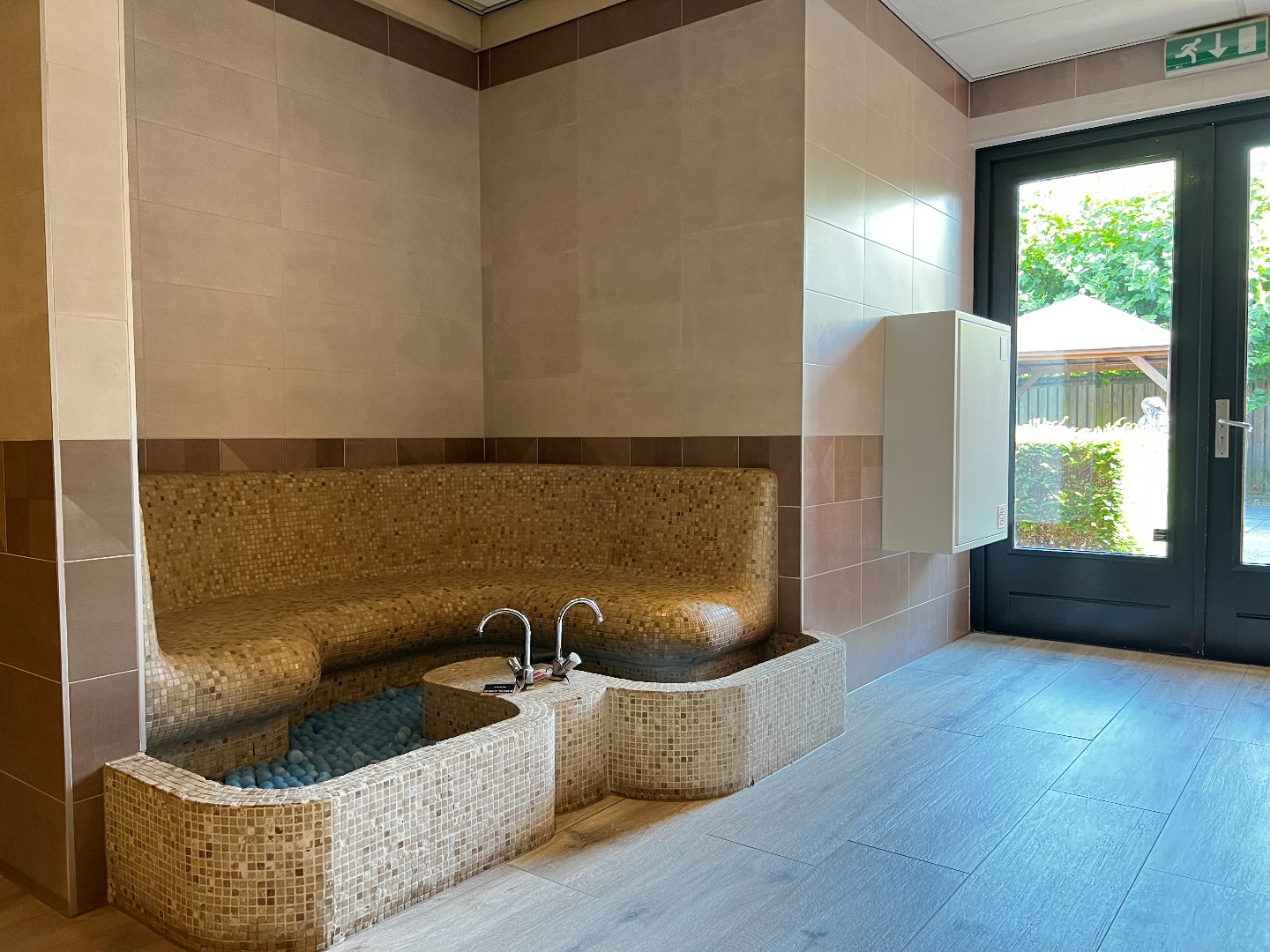 Het wellnesscentrum beschikt over een gezellige horeca die speciaal is ingericht ten behoeve van het wellnessgedeelte, waar drankjes, lichte maaltijden en gezonde snacks kunnen worden geserveerd. Deze ruimte vormt een centrale ontmoetingsplek binnen het centrum en kan volledig naar eigen wens worden ingericht. Voor de technische en operationele ondersteuning zijn er meerdere technische ruimtes aanwezig, waaronder één in het Osmaans badhuis, één in het souterrain en één onder de grond van het buitenterrein. Hier zijn alle installaties voor water, verwarming en saunafaciliteiten professioneel ondergebracht, waardoor het centrum volledig operationeel is.