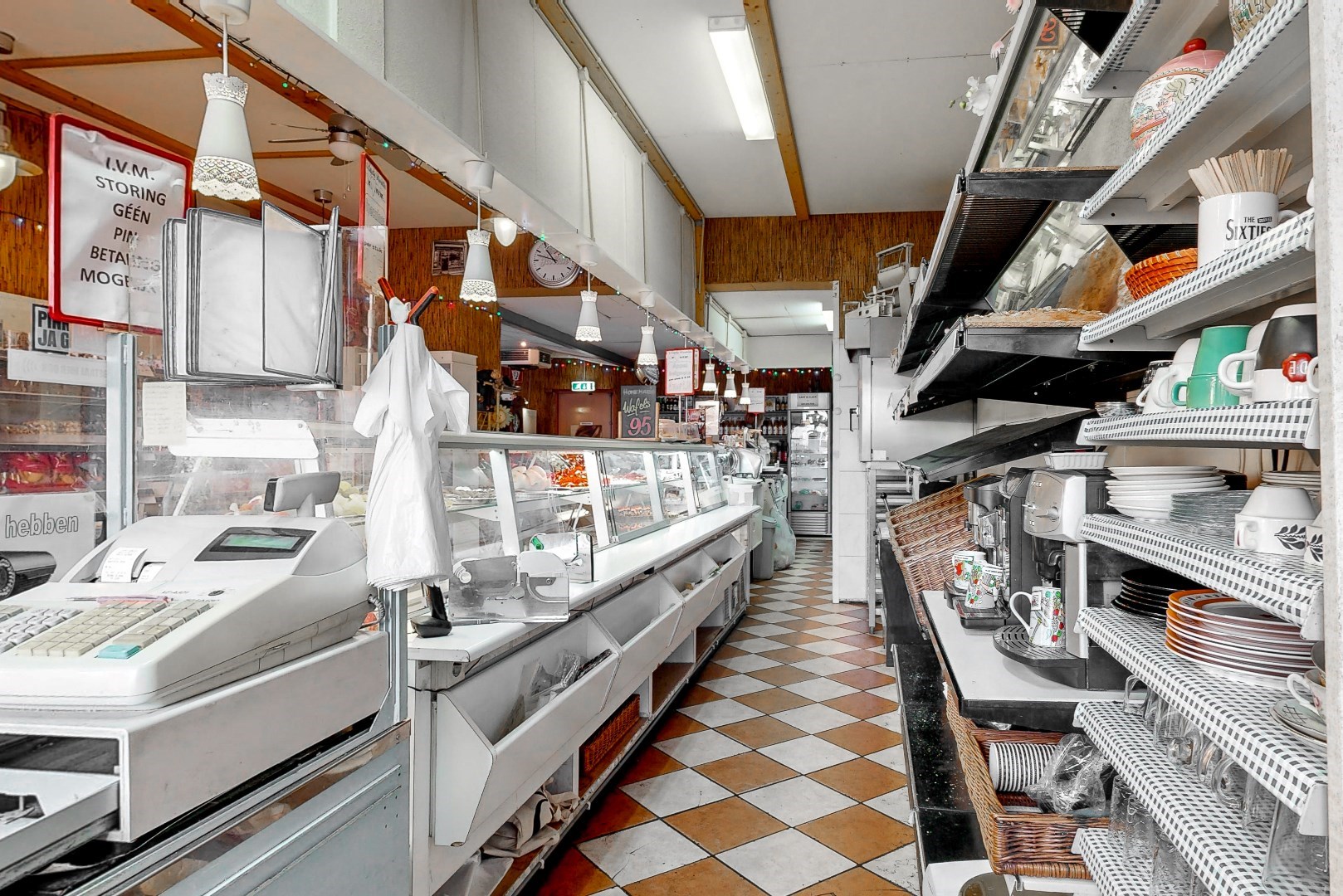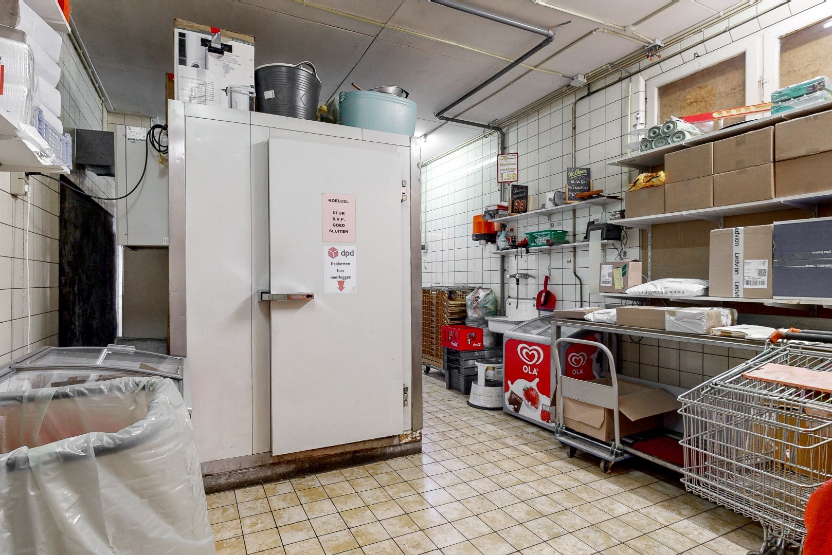 - Ruime winkelruimte met voorraadruimte en koelcellen;