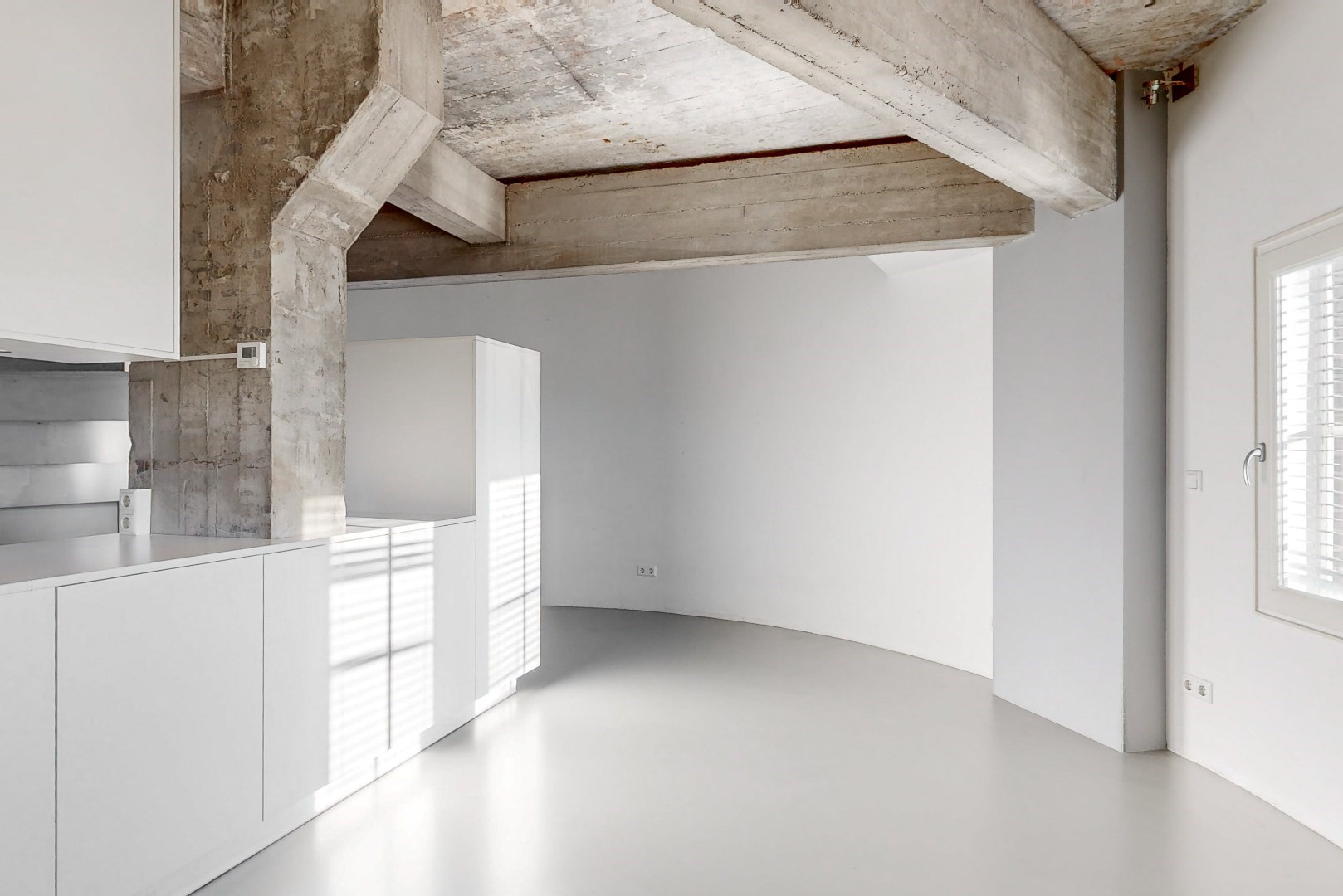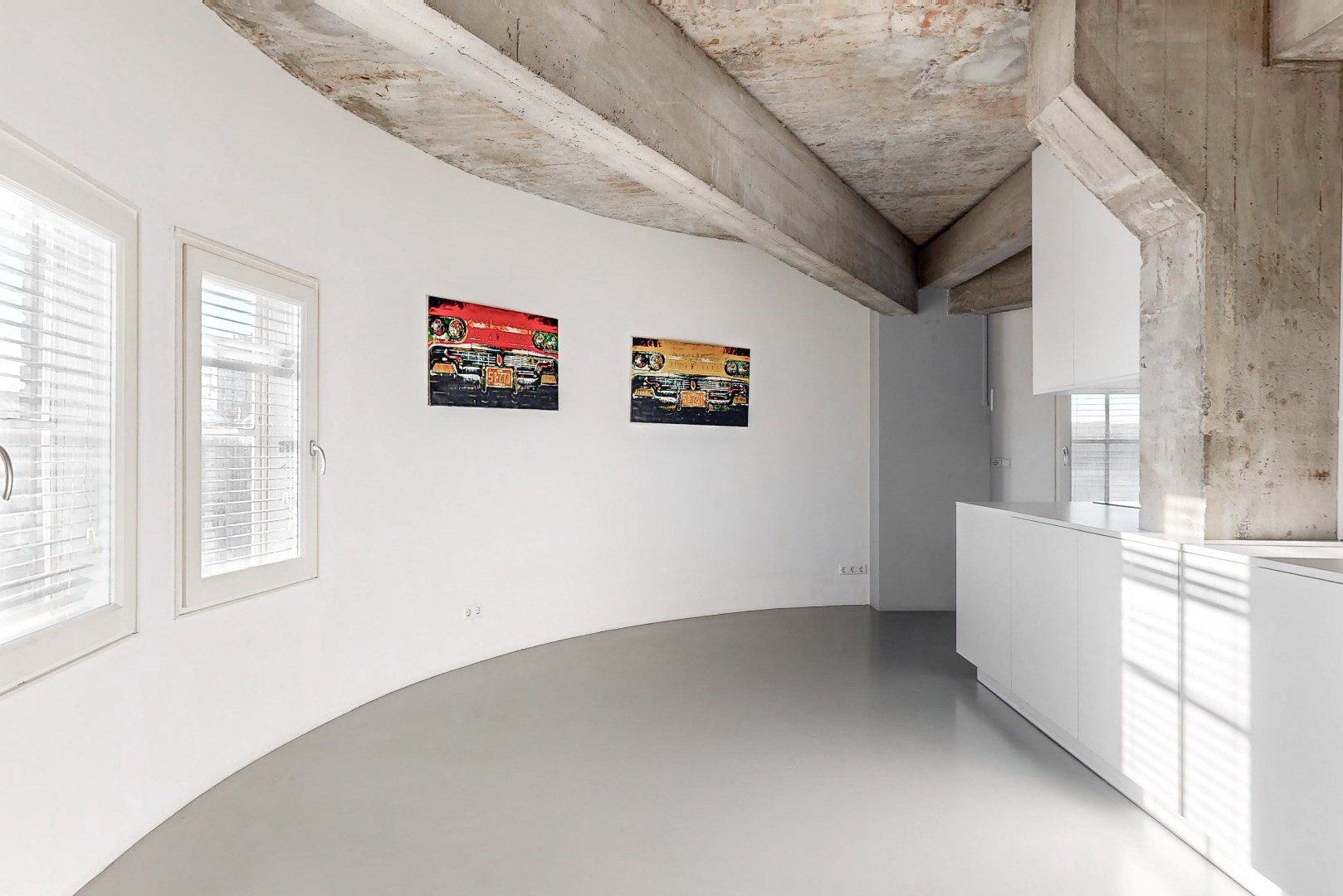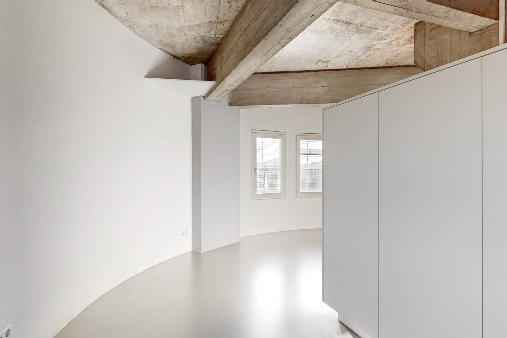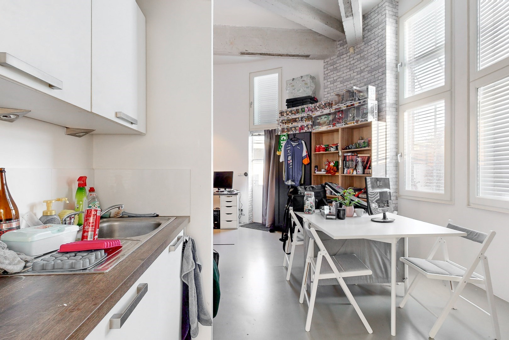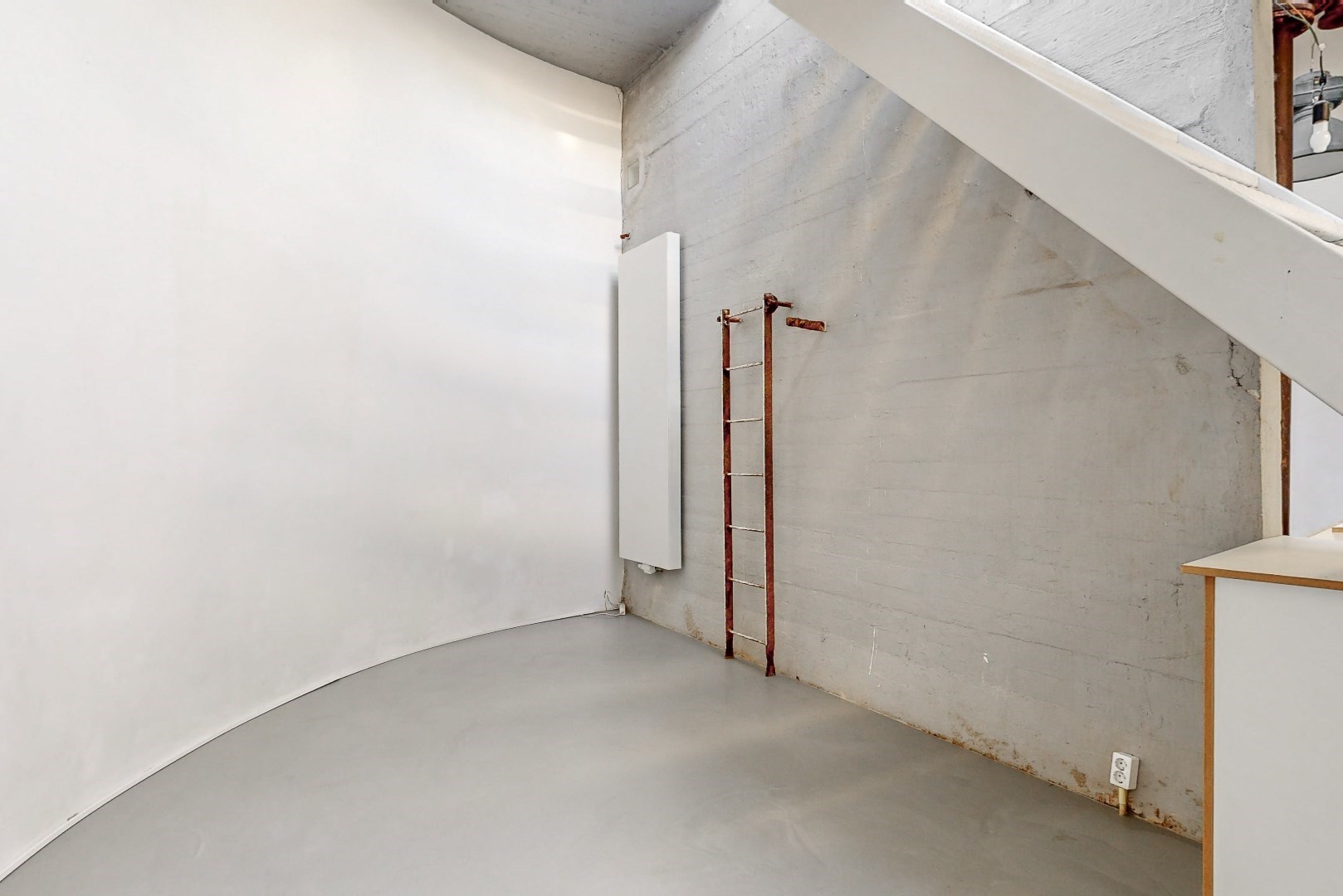 De studio op de begane grond heeft een eigen entree. Via de entree loop je het kantoor cq. de woonkamer met open keuken binnen. De keuken beschikt over een gasfornuis, afzuigkap, wasbak, oven en vaatwasser.