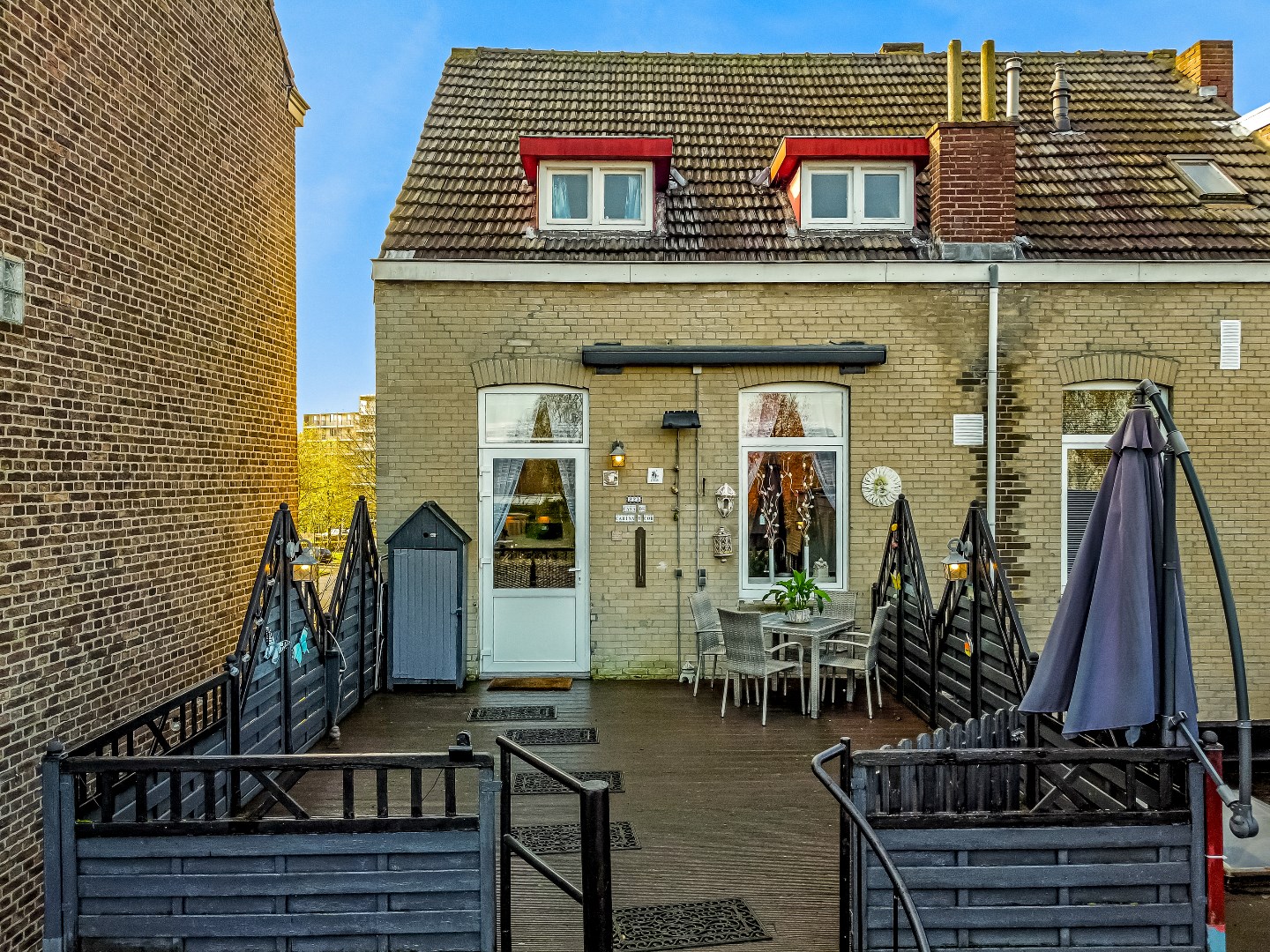 - Grotendeels kunststof en houten kozijnen met isolerende beglazing;