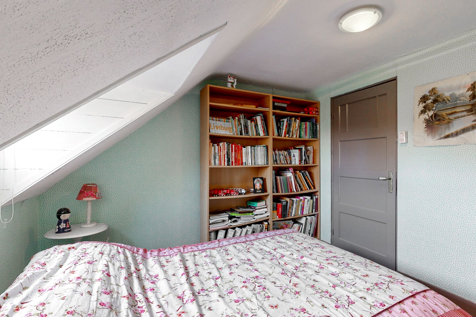 De geheel afgetimmerde en geïsoleerde zolder is via een vlizotrap op de tweede verdieping bereikbaar.