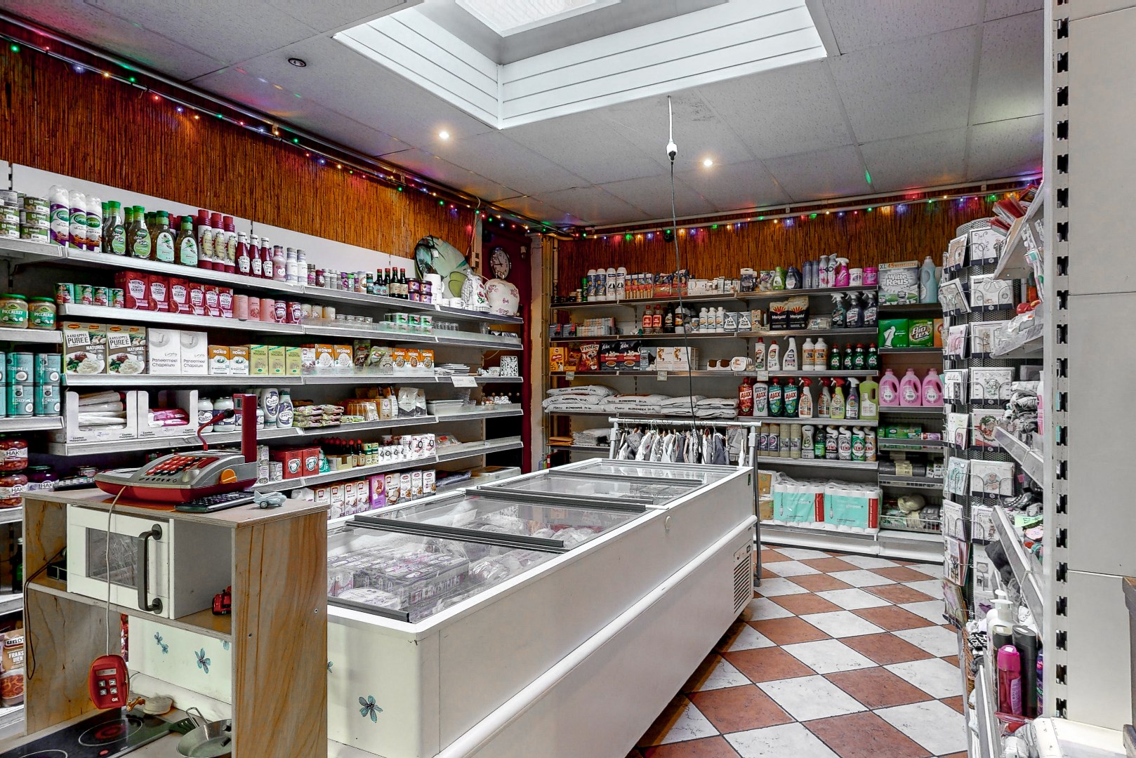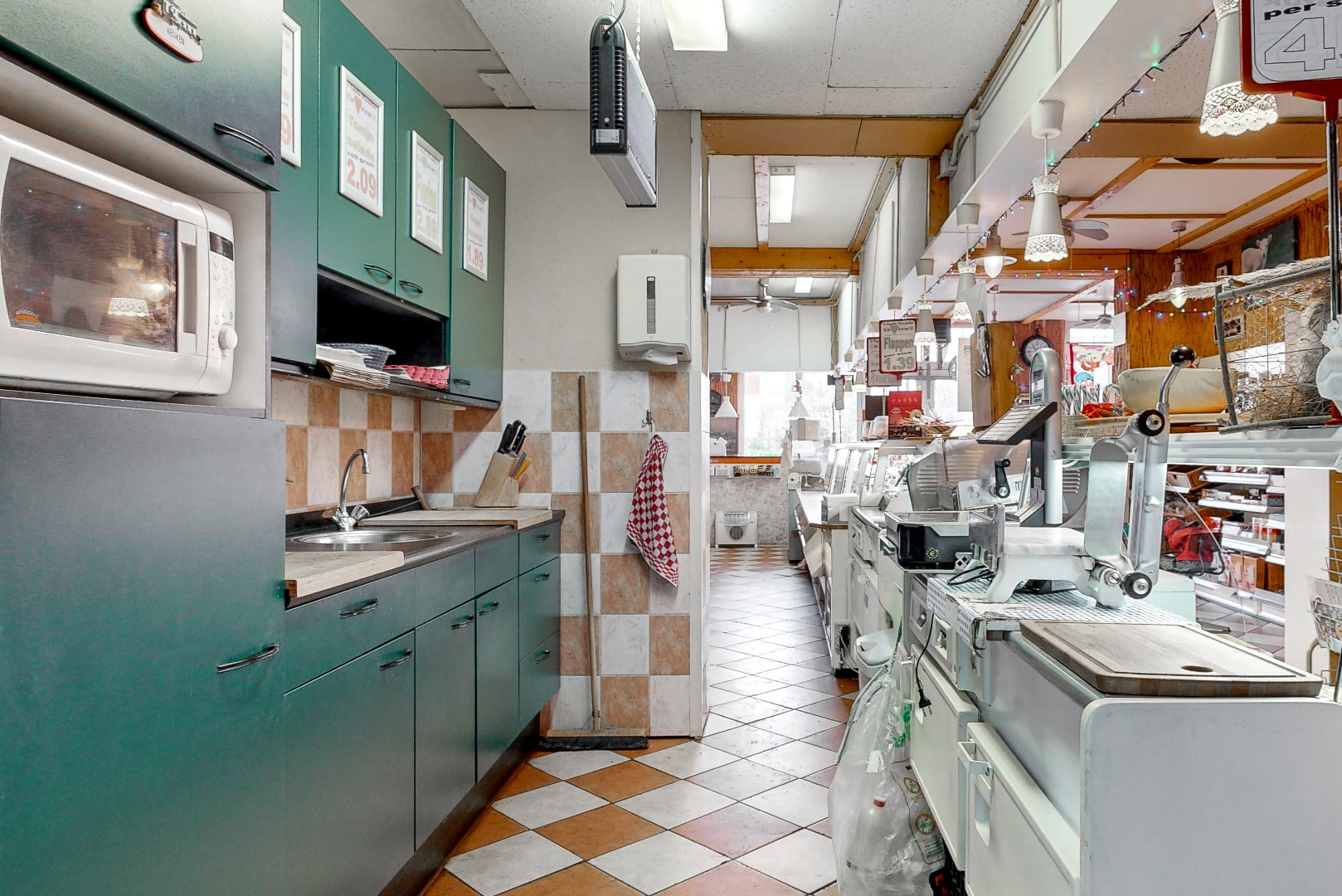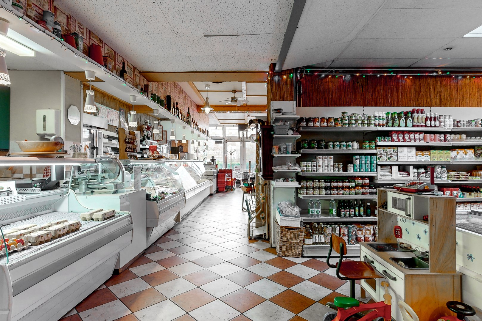 - Ruime winkelruimte met voorraadruimte en koelcellen;