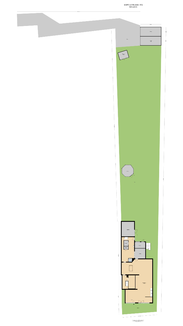 De riante achtertuin is vanuit de opslagruimte toegankelijk en tevens vanuit de zijkant en achterzijde van het pand via een eigen weg. De tuin is ruim en als je groene vingers hebt, dan kun je hier uren in vertoeven. Ook voor kinderen is deze tuin ideaal! Genoeg ruimte om te spelen! Voor in de tuin ligt een theehuis met open haard waar je gezellig kunt zitten met familie of vrienden onder het genot van een hapje en drankje. Achterin de tuin bevindt zich een tuinhuis, waar de fietsen gestald kunnen worden of je tuingereedschap in opgeborgen kan worden. Aan de achterzijde liggen twee grote garages waar voldoende ruimte is om diverse (grote) voertuigen in te stallen. Deze zijn bereikbaar via een afgesloten eigen weg.