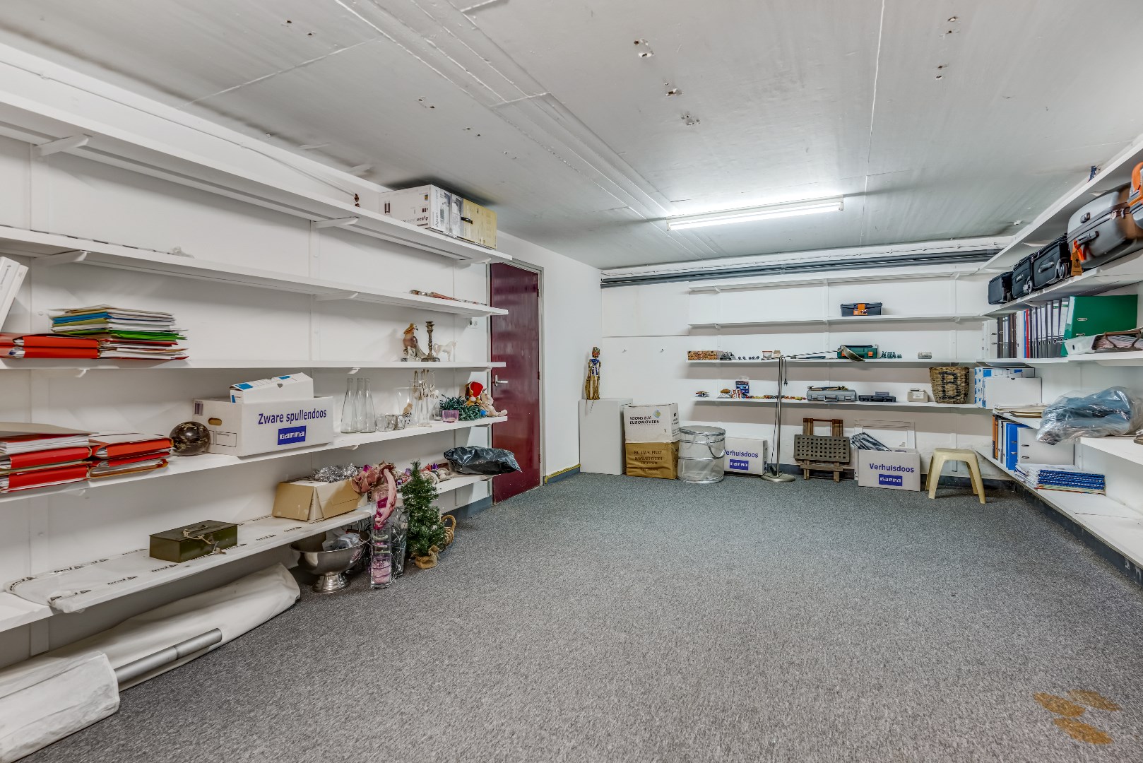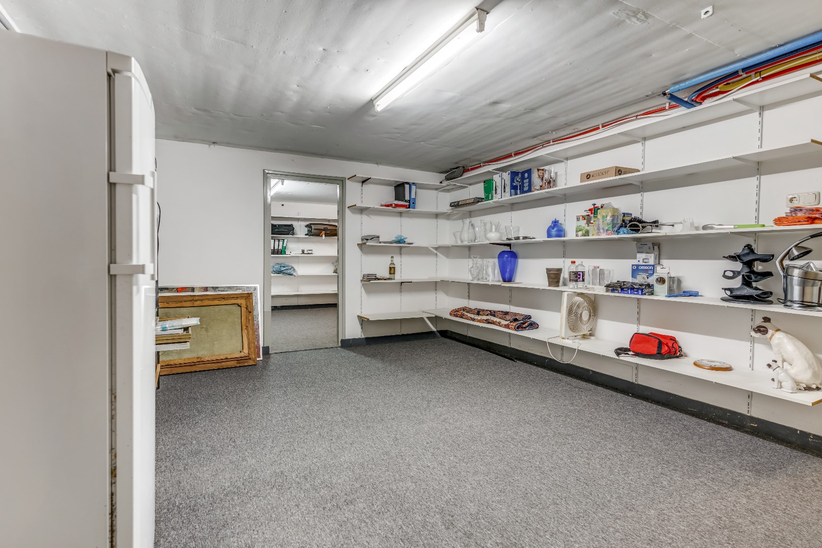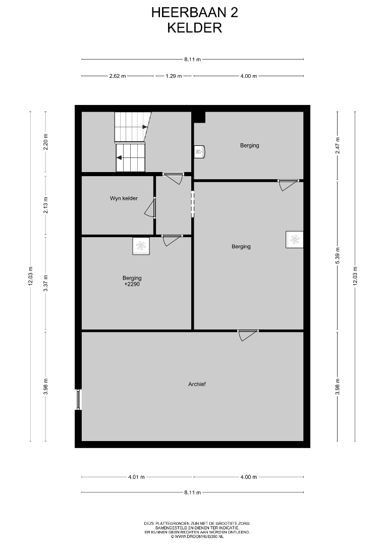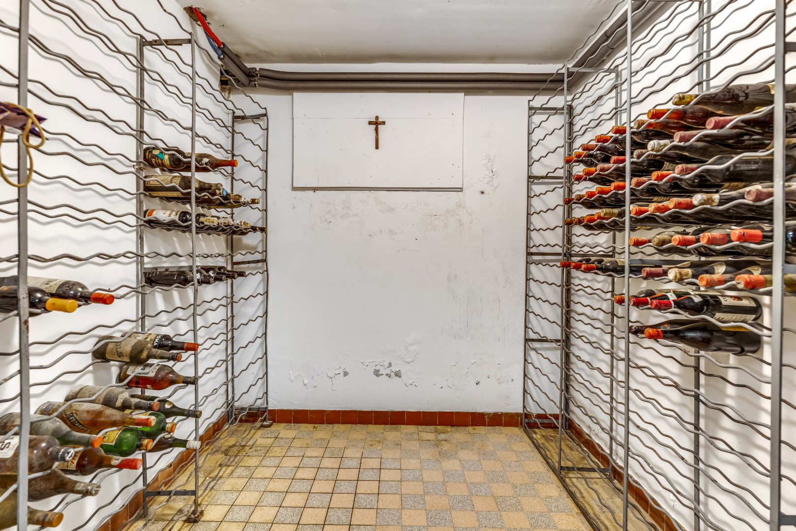 Vanuit de ontvangsthal leidt een trap naar een uitgebreid keldercomplex (totaal 100 m²) met een vijftal aparte kelderruimtes met hoge plafonds. In één van deze ruimtes bevinden zich de verwarmingsketel en de elektrische boiler, terwijl de andere vier keldervertrekken bij uitstek geschikt zijn als hobby- of archiefruimte, wijnkelder of opbergruimte voor huishoudelijke spullen. Al met al is het keldercomplex hierdoor een ruimte die ongekende mogelijkheden biedt.