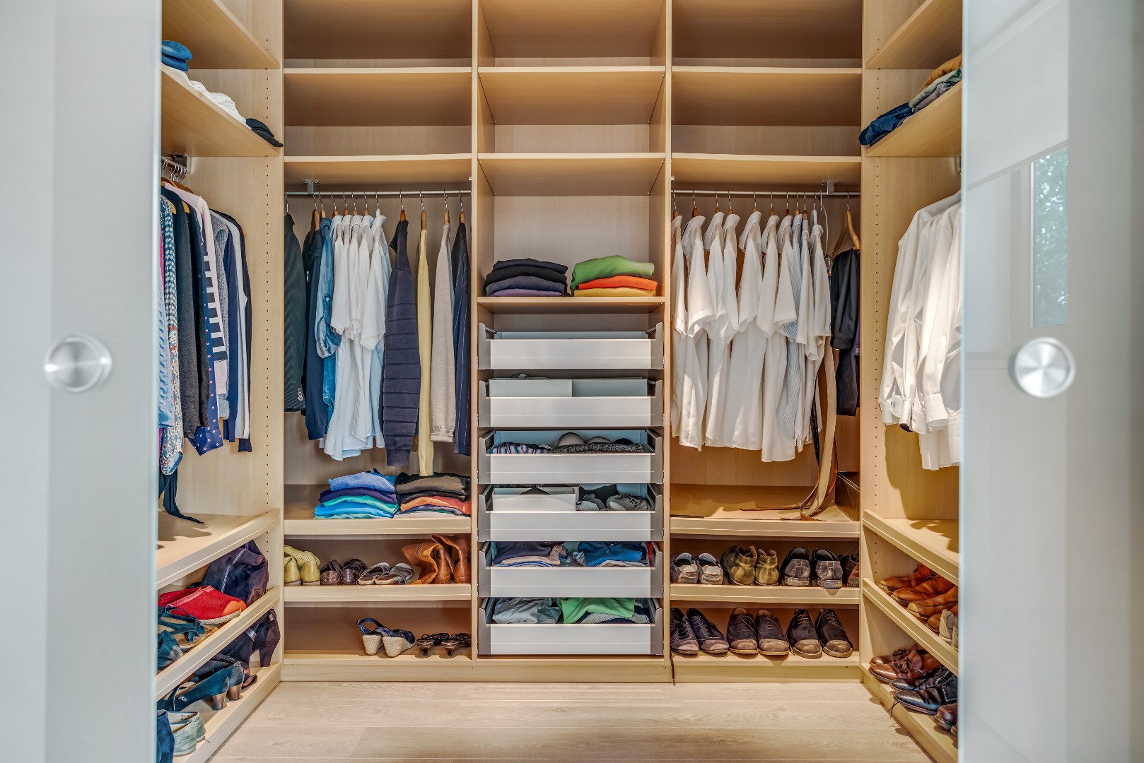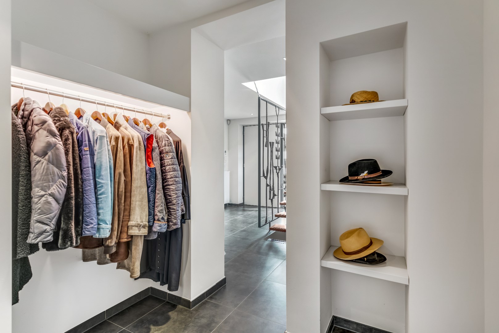 De naastliggende inloopkast (7 m²) met een matglazen deur biedt volop ruimte voor kleding en schoeisel.