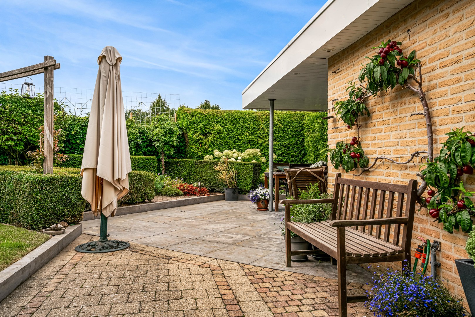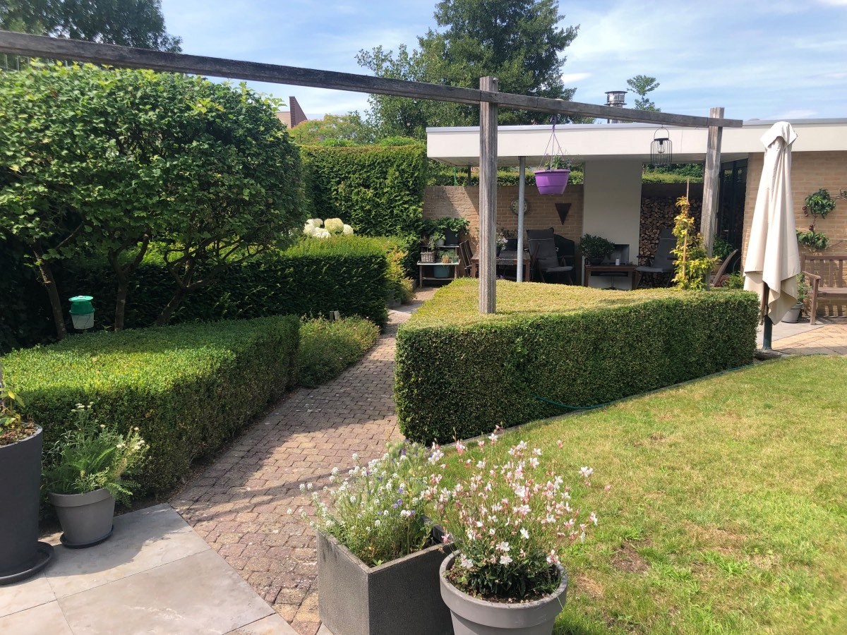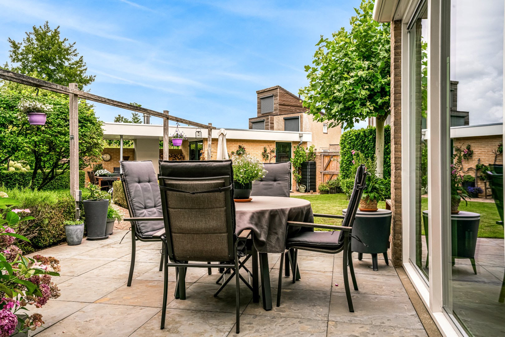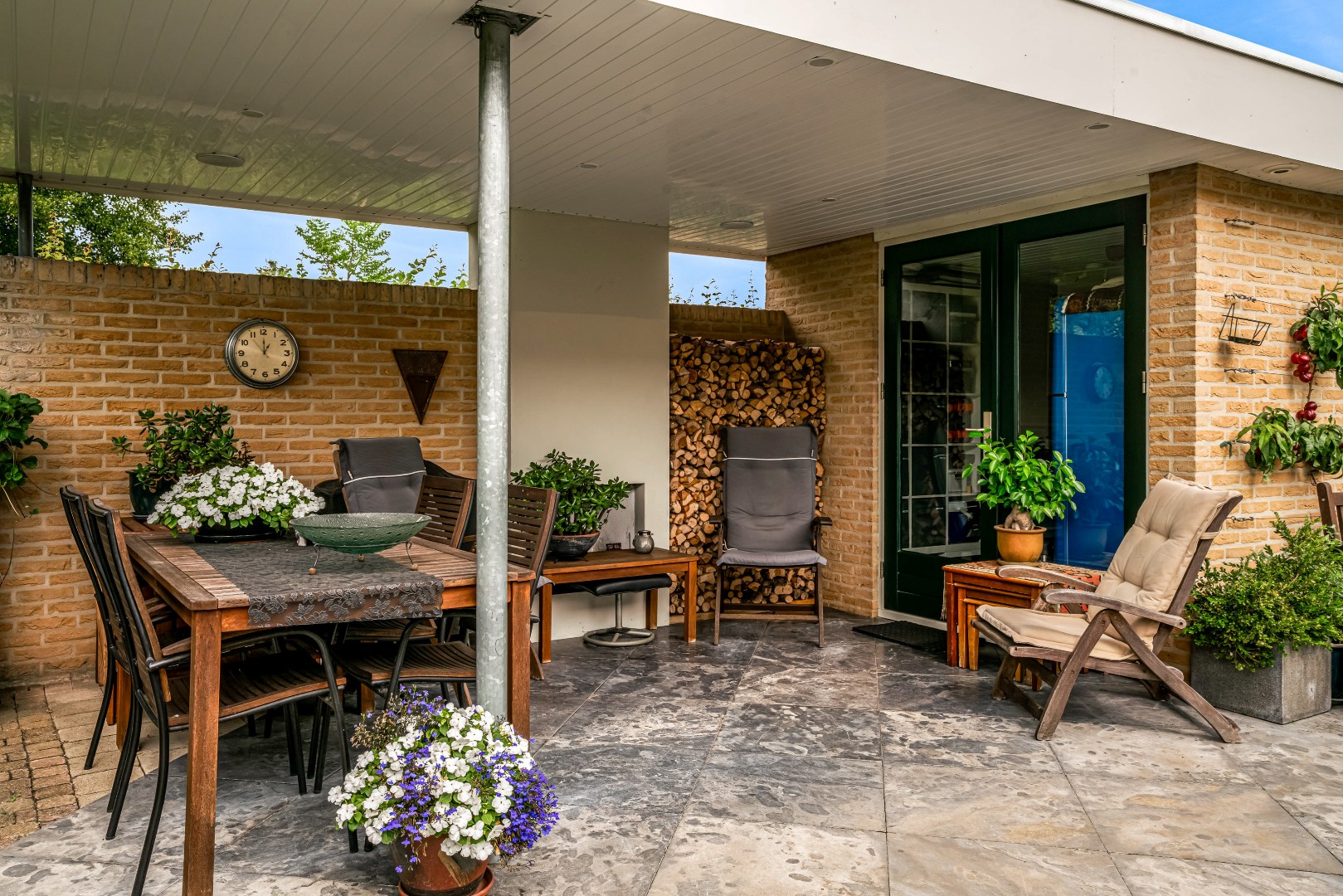 Deze woning heeft zowel een voor- als achtertuin, dus je geniet het hele jaar door van buitenruimte. Heb je groene vingers? Dan kun je je hier helemaal uitleven. De achtertuin biedt een ruim terras waar je lange zomeravonden doorbrengt met een hapje en een drankje. Schijnt de zon iets te fel, dan zorgt het zonnescherm voor een fijne schaduwplek. Achterin vind je een sfeervol loungegedeelte met open haard – perfect voor gezellige avonden, ook wanneer het wat frisser wordt.