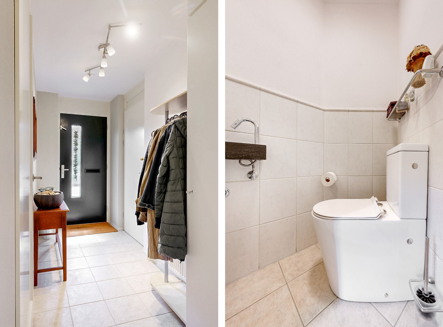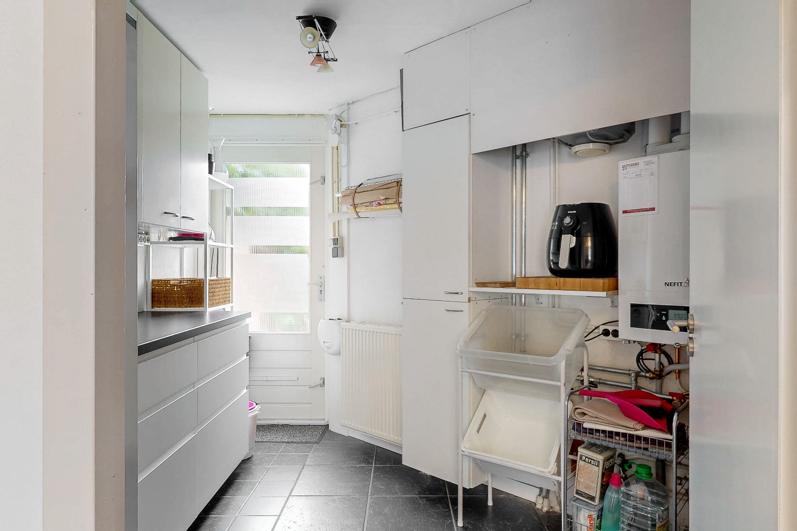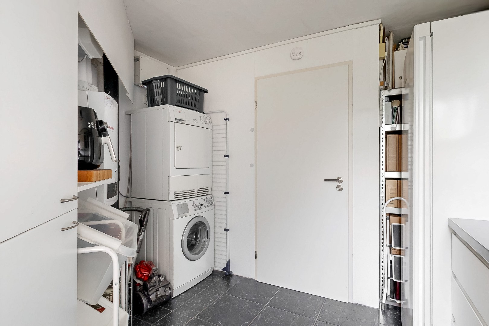 In de praktische bijkeuken vind je de witgoedaansluitingen, een keukenblok én de installaties, zodat alles netjes uit het zicht blijft.