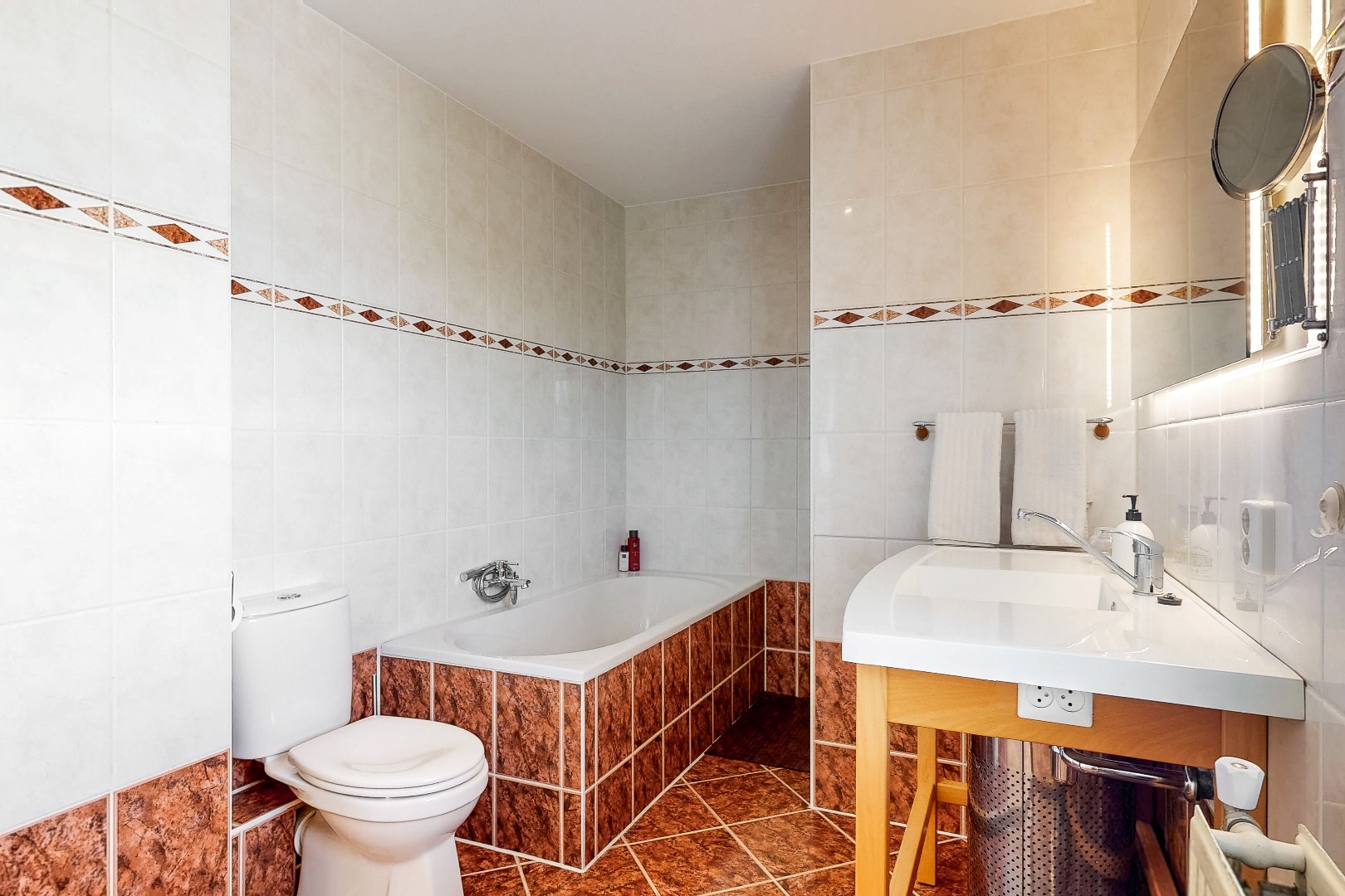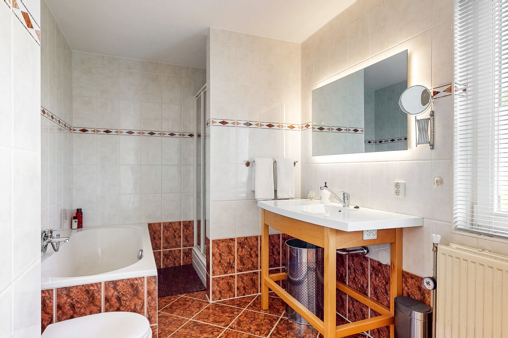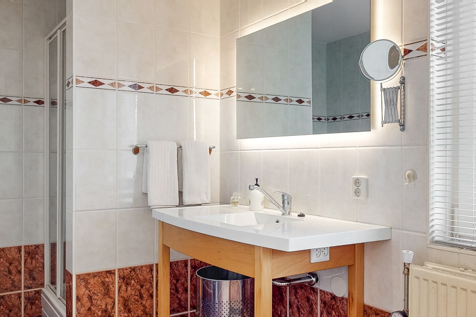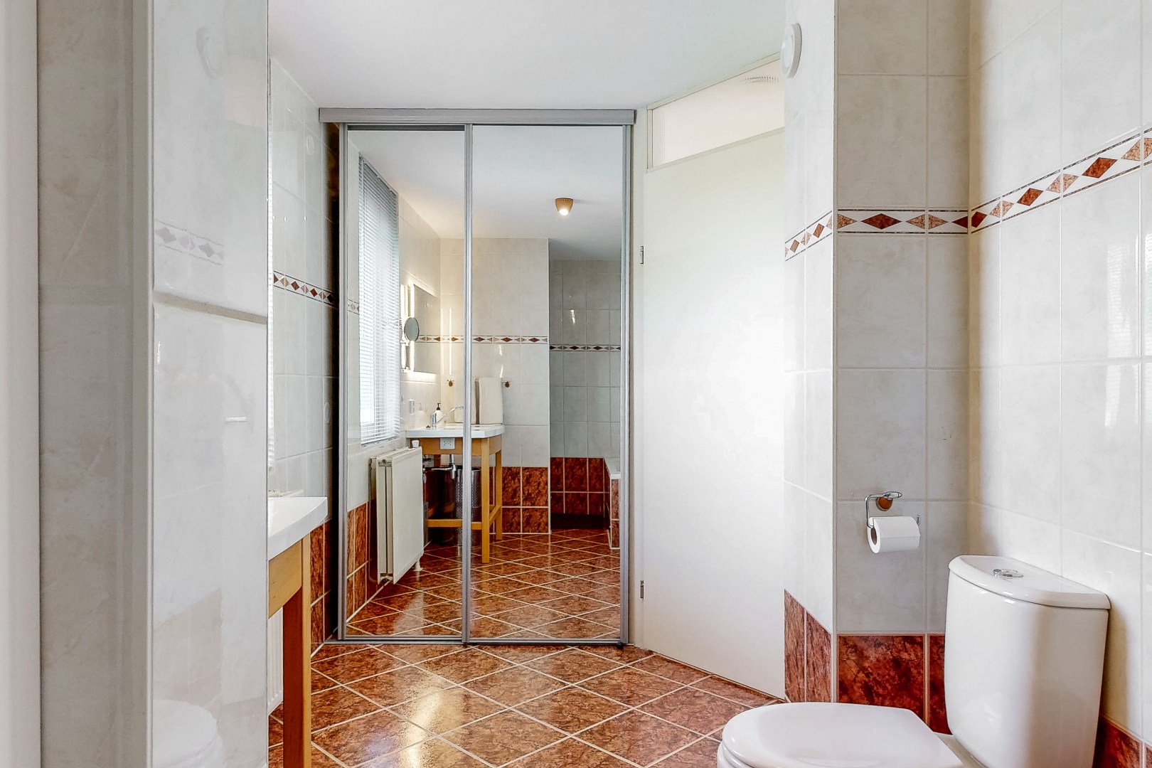 De badkamer is netjes onderhouden en voorzien van een douche, ligbad, wastafel en toilet. Hoewel deze licht gedateerd is, geeft dit je meteen de kans om de ruimte helemaal naar je eigen smaak te moderniseren. De royale wandkast biedt volop opbergruimte voor al je toiletartikelen.