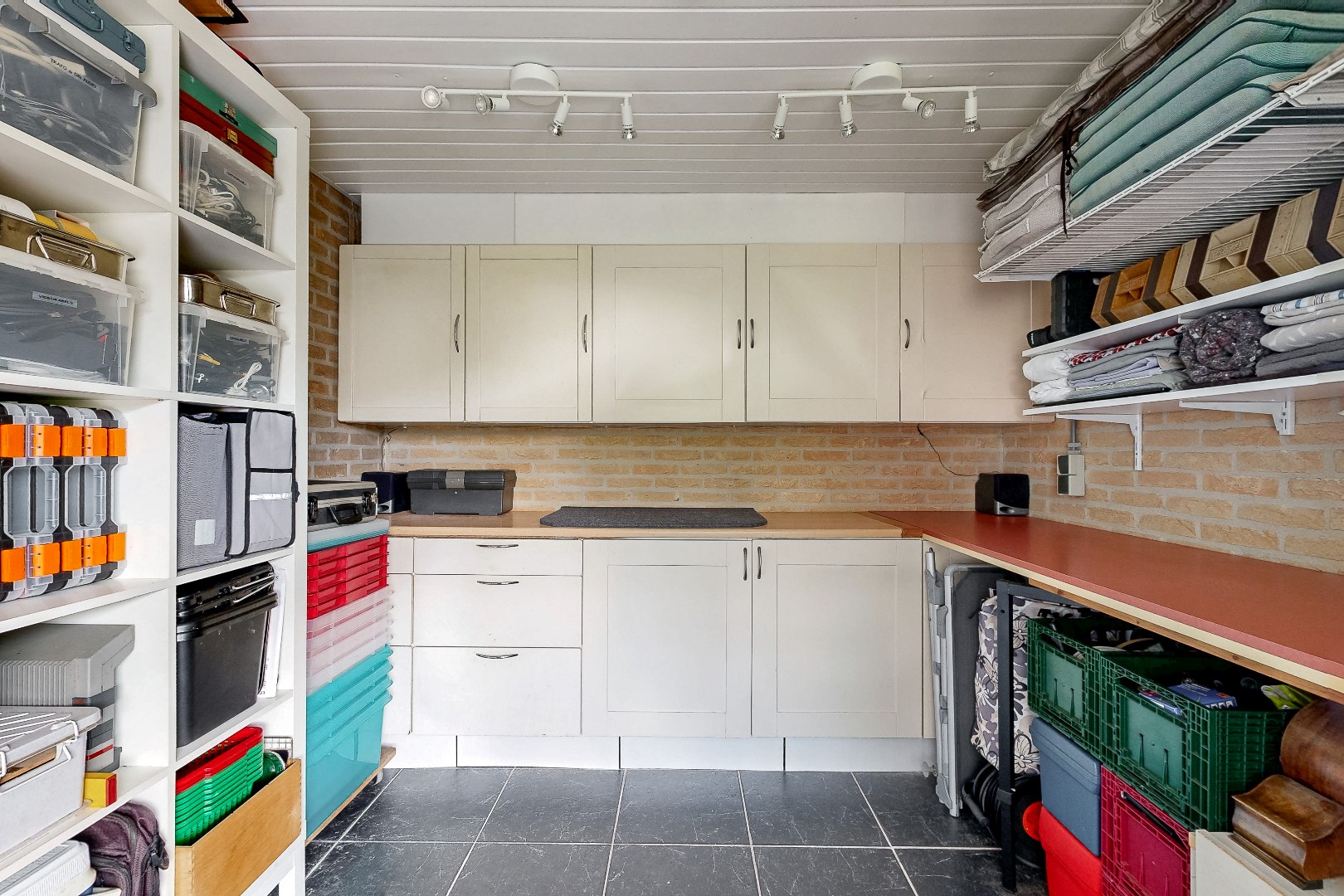 Verder is er een praktische berging voor fietsen en tuingereedschap. Dankzij de vrije achterom, die bereikbaar is via de zijstraat, is de tuin bovendien makkelijk toegankelijk.