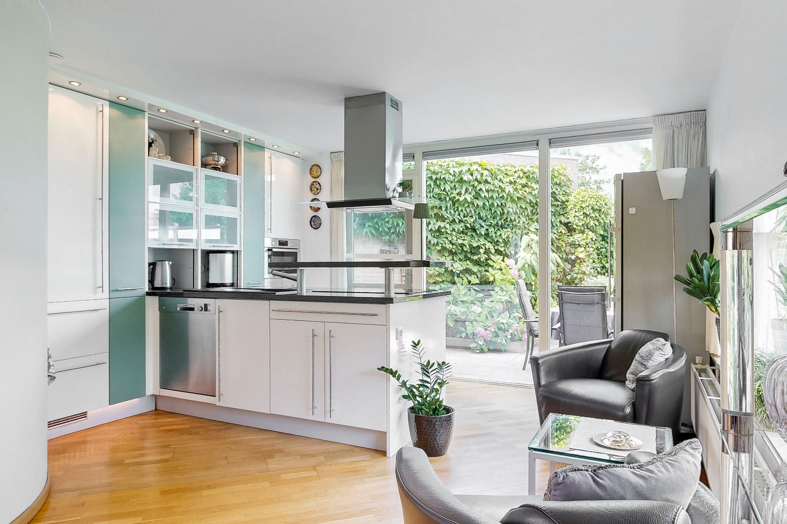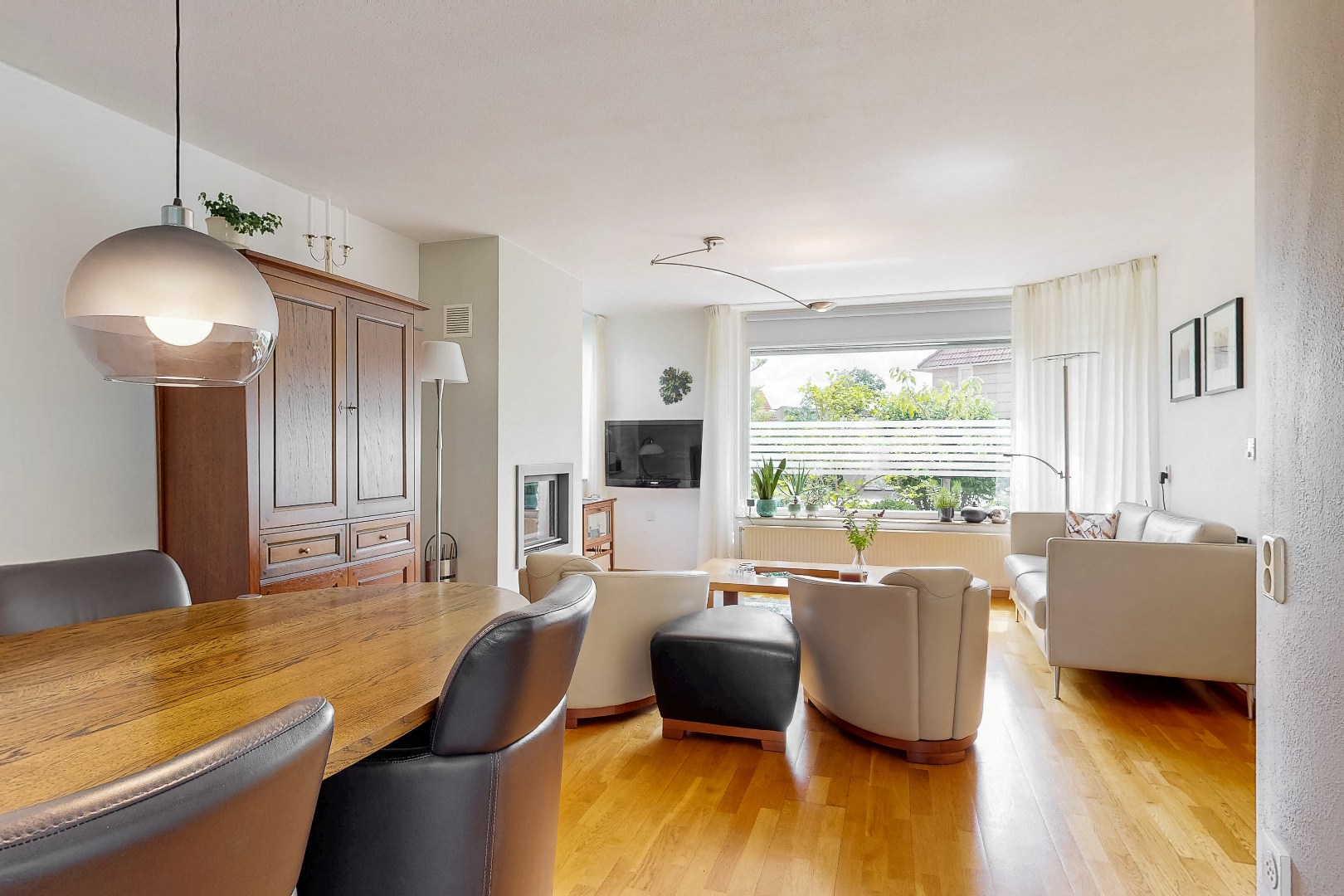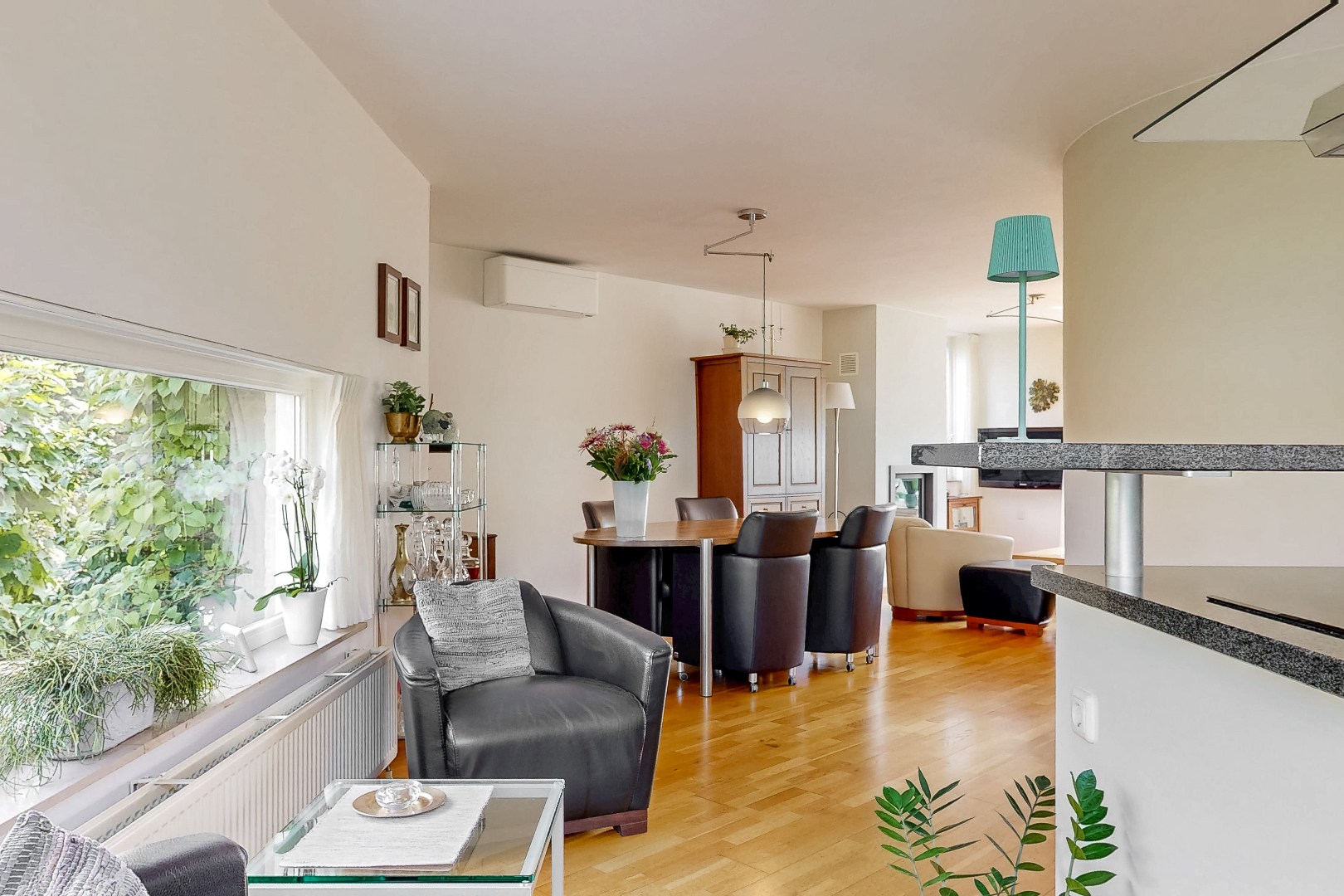 De lichte woonkamer met open keuken (2005) straalt ruimte en gezelligheid uit, dankzij de grote ramen aan zowel de voor- als achterzijde. Het zonnetje valt hier heerlijk naar binnen, waardoor de hele ruimte een warme sfeer krijgt. In de woonkamer kun je op een koude winterse dag de openhaard aanzetten en opwarmen. De keuken, gelegen aan de achterzijde, is van alle gemakken voorzien: een keramische kookplaat met afzuiging, koelkast, combimagnetron, oven, vaatwasser, wasbak én volop kastruimte voor al je servies, pannen en voorraad. Vanuit de keuken loop je zo de tuin in – ideaal op zomerse dagen! En met de airconditioning op de begane grond blijft het binnen altijd heerlijk koel.