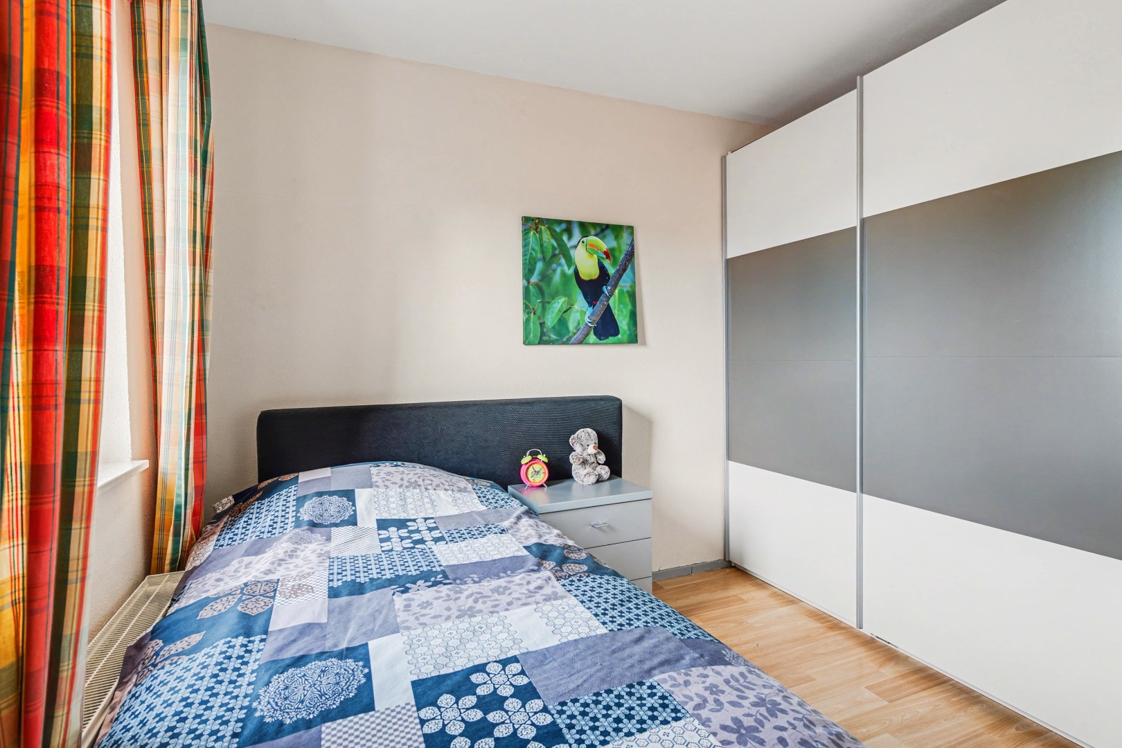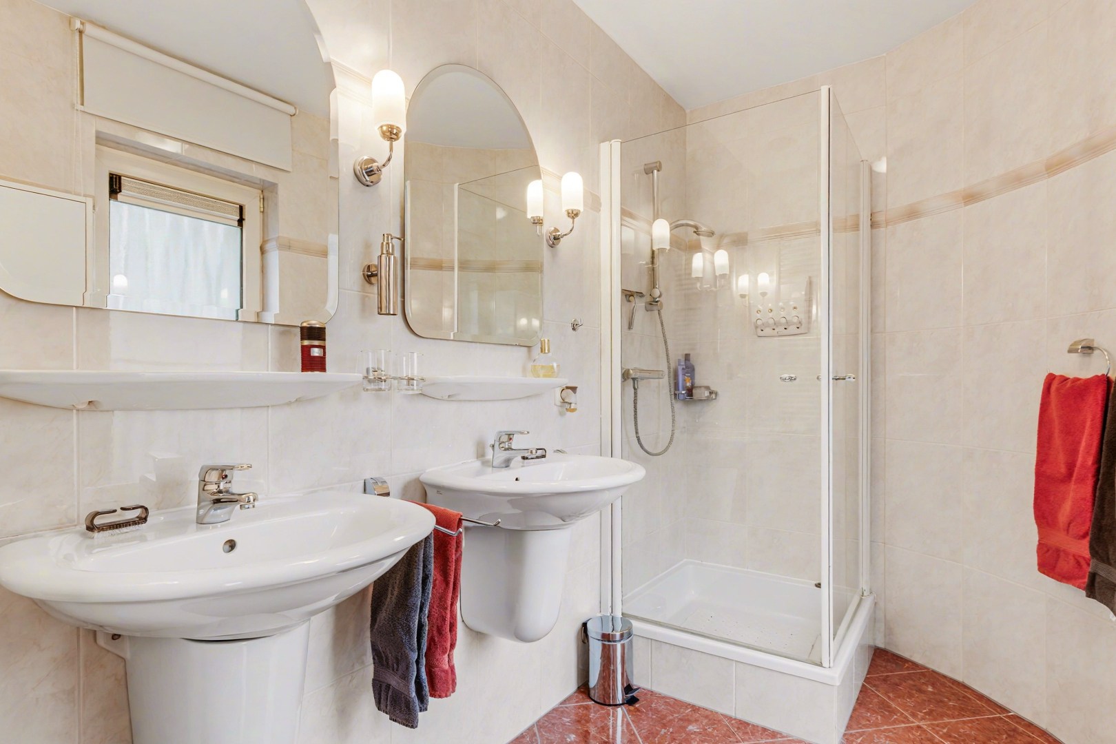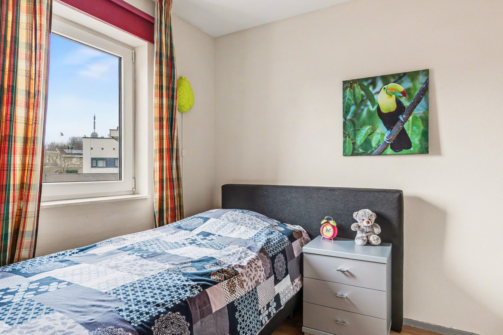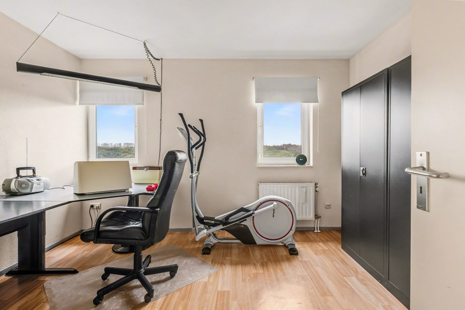 Een groot pluspunt van deze woning is dat er op de begane grond al een slaapkamer aanwezig is met aangrenzende badkamer. Dit maakt de woning geschikt voor wie graag alles gelijkvloers wil gebruiken, maar de kamer kan natuurlijk ook dienen als werk- of hobbyruimte. De badkamer is ingericht met twee wastafels en een douche, waardoor het dagelijkse comfort compleet is. Daarnaast is er een aparte wasruimte aanwezig, wat zorgt voor extra gemak in het huishouden.