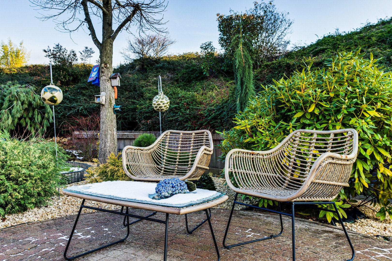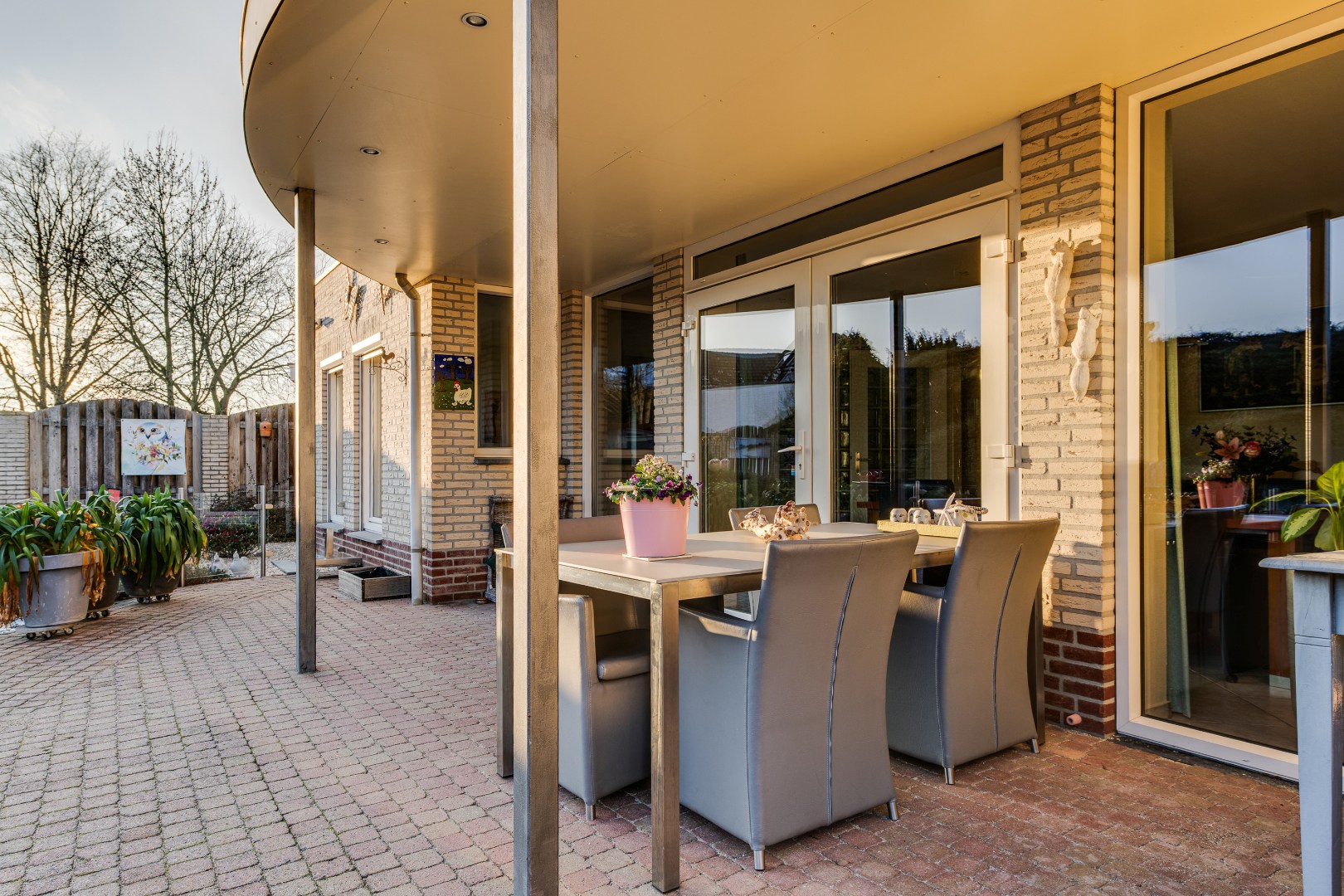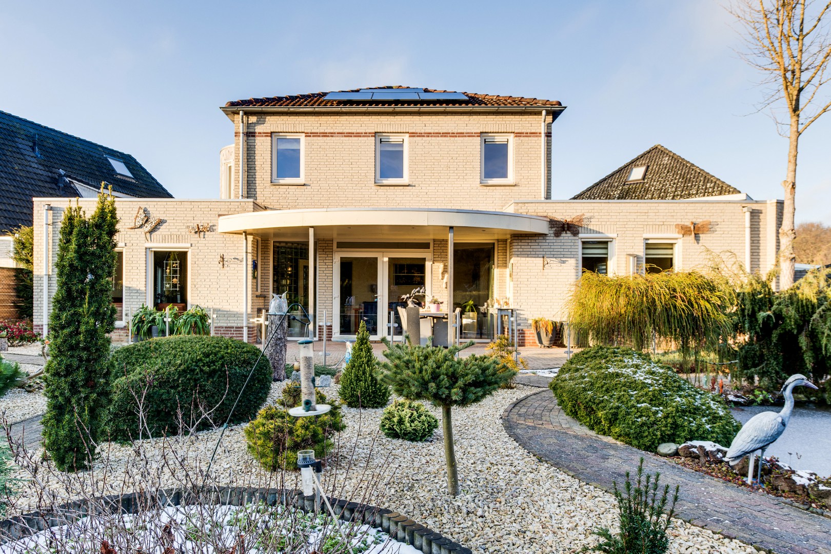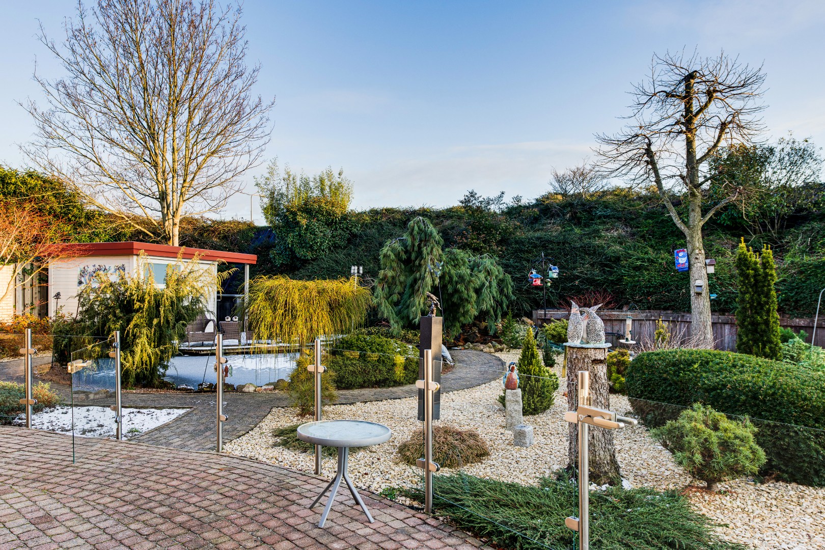 De tuin is zonder twijfel het visitekaartje van deze woning. Met veel zorg en aandacht is hier een bijzondere buitenruimte gecreëerd die een heel eigen karakter heeft. Door de verschillende perkjes ontstaat een levendig en groen geheel, dat tegelijkertijd onderhoudsvriendelijk is. Hierdoor geniet je het hele jaar door van deze tuin, zowel binnen als buiten. De vijver vormt het middelpunt van de tuin en brengt een gevoel van rust en natuur met zich mee. Het kabbelende water en het groen rondom maken dit een plek waar je echt even kunt ontsnappen aan de drukte van de dag. Dankzij de verschillende hoekjes en zitplekken kun je hier op ieder moment van de dag een fijne plek vinden om te genieten van het zonnetje!