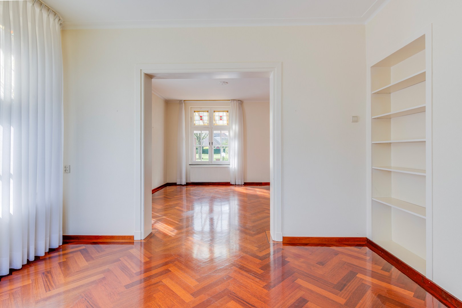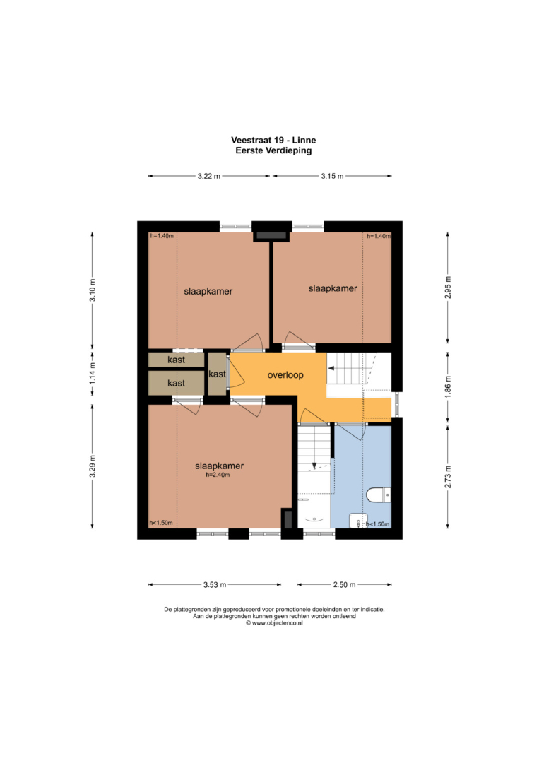 Op de eerste verdieping bevinden zich drie slaapkamers, elk met hun eigen indeling en mogelijkheden. Deze ruimtes zijn ideaal voor een gezin, maar kunnen ook flexibel worden ingericht als werk- of hobbykamers. Op twee van de slaapkamers en op de gang bevinden zich muurkasten, waar je ook nog je kleding of spullen kunt opbergen.