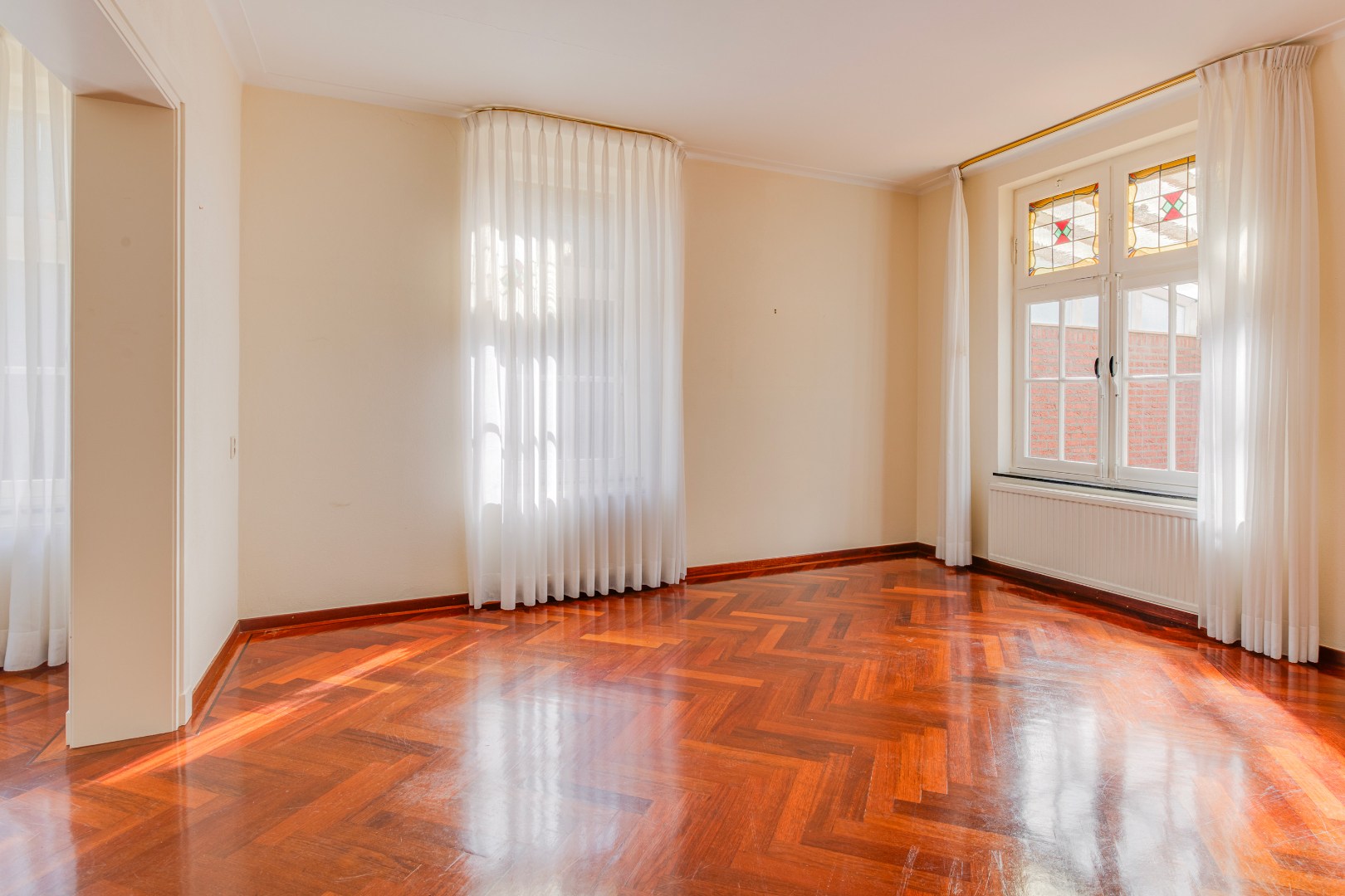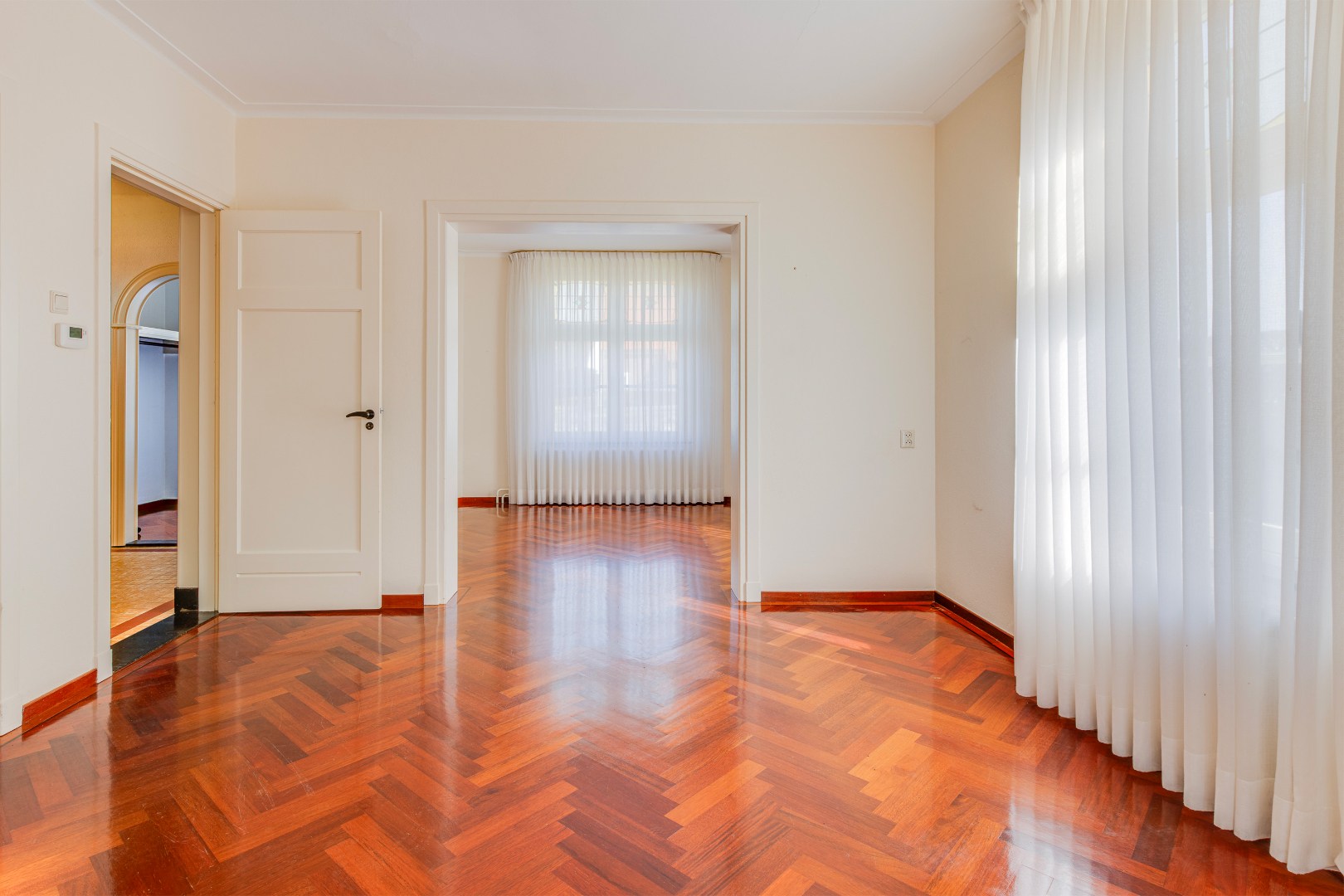 De woonkamer en eetkamer vormen samen een fijne leefruimte met een prettige lichtinval en een open karakter. De ruimtes staan met elkaar in verbinding, maar bieden ook de mogelijkheid om ze naar wens opnieuw in te delen of samen te voegen tot één royale leefruimte.