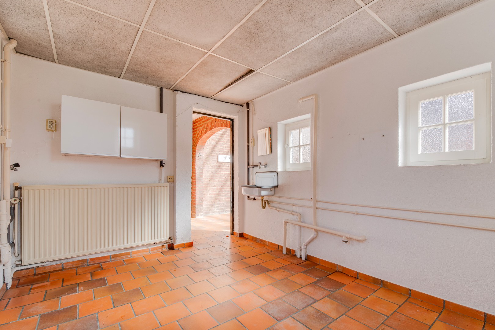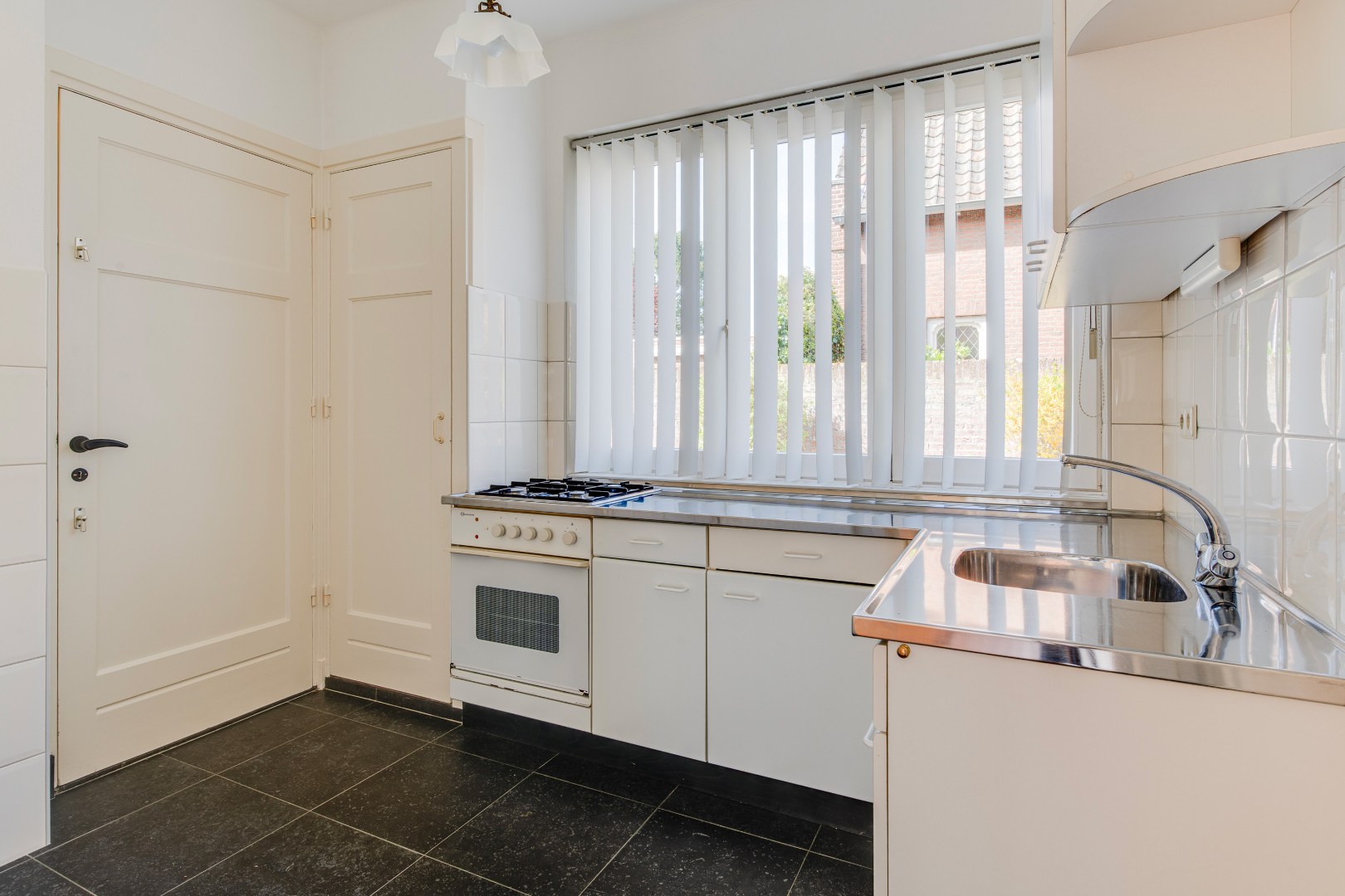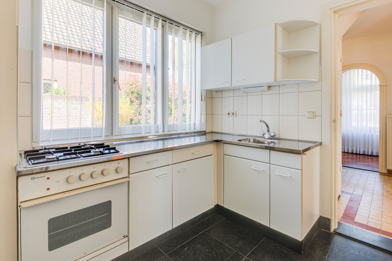 De keuken ligt centraal in de woning en sluit aan op de tuinzijde. Vanuit hier is er toegang tot de handige bijkeuken/wasruimte en het toilet. Met een moderne herinrichting kan hier een eigentijdse leefkeuken ontstaan die het hart van het huis vormt, met een mooie verbinding naar buiten.