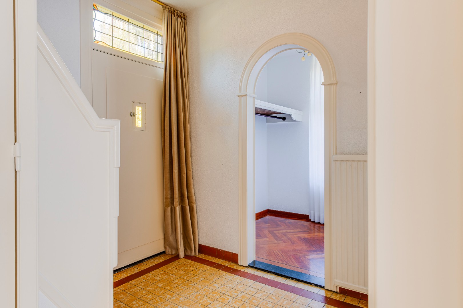 Via de entree kom je binnen in de hal, die toegang biedt tot verschillende ruimtes op de begane grond. Aan de voorzijde bevindt zich een extra kamer die zich uitstekend leent als werkruimte, speelkamer of hobbyruimte.