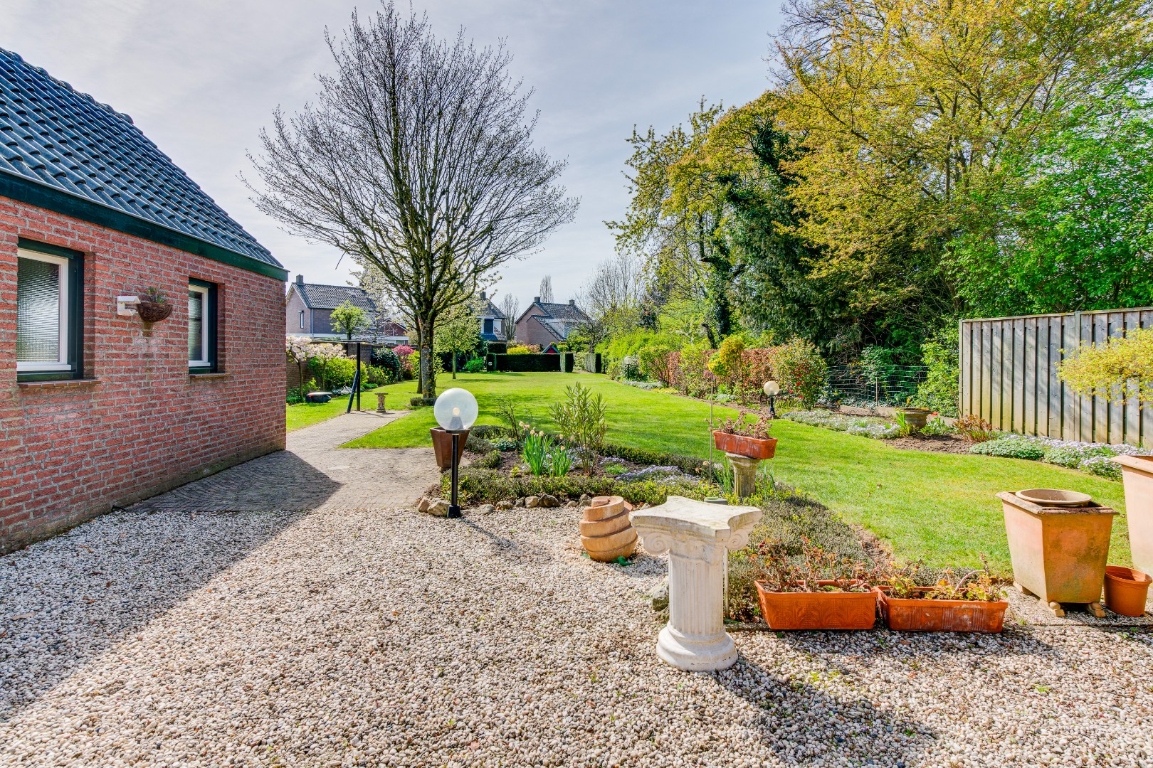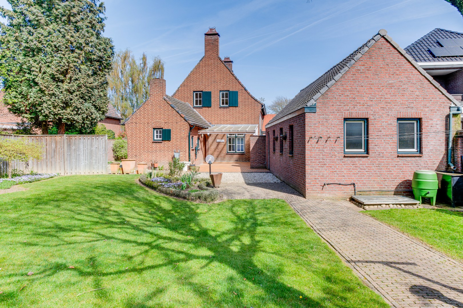 De tuin is ruim opgezet en vormt een verzorgde en sfeervolle buitenruimte met volop privacy. Met oog voor groen en indeling is hier al een fijne plek gecreëerd waar je direct van kunt genieten. Achter in de tuin bevindt zich een aangelegd terras, een heerlijke plek om in alle rust te zitten, te eten of lange zomeravonden door te brengen.