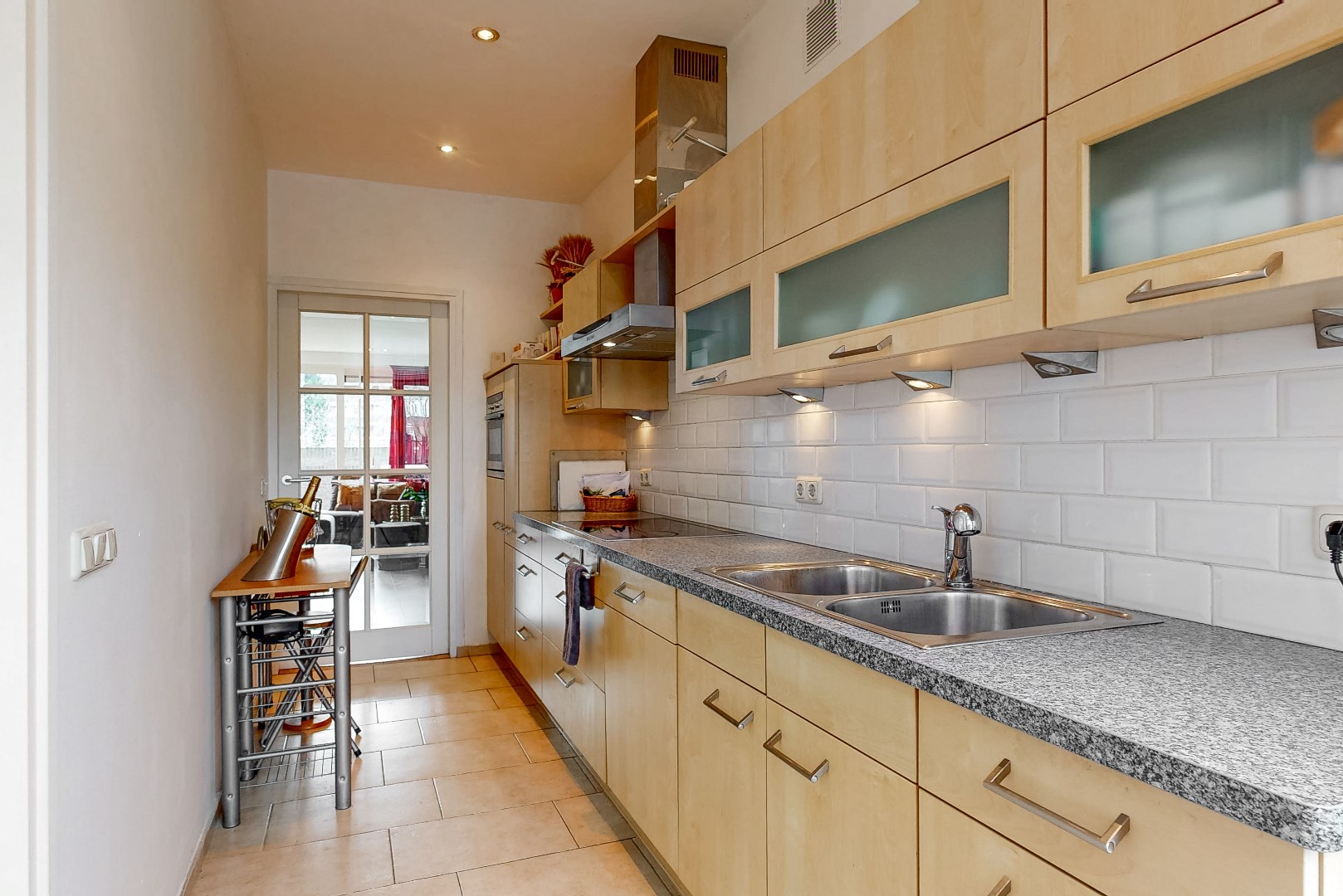 De keuken heeft alles wat je nodig hebt! Zo beschikt de keuken over een keramische 5-pits kookplaat, afzuigkap, dubbele wasbak, combi-oven/magnetron, koelkast en vaatwasser! Verder is er genoeg opbergruimte voor al het servies en de pannen.