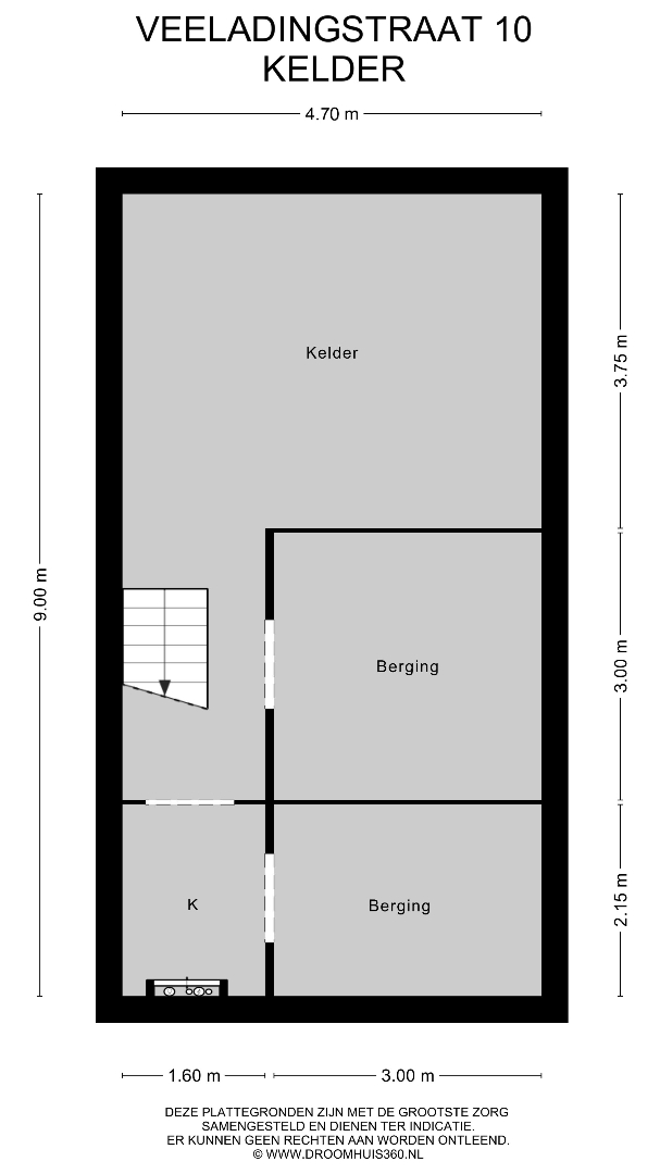De kelder is toegankelijk vanuit de hal. De kelder bevindt zich onder het hele huis. Hier bevinden zich drie ruime opslagruimtes waar je spullen of je voorraad boodschappen kunt opslaan. De ruimtes zijn ook ideaal als hobbyruimte, fitnessruimte, speelruimte etc. te gebruiken.