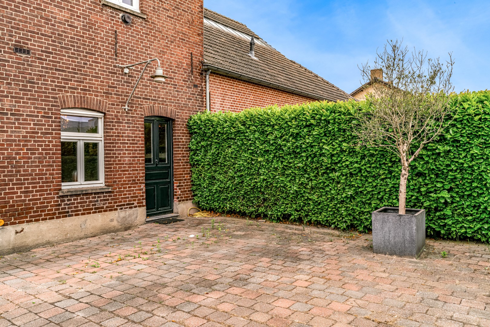 Aan de zijkant van de woning bevindt zich de oprit waar je enkele auto’s kunt parkeren.