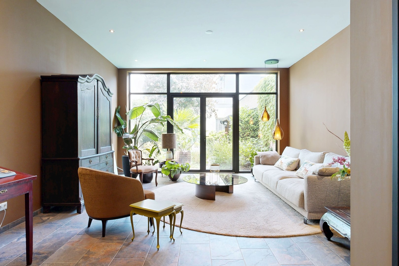 Na een drukke dag kom je heerlijk tot rust in de royale woonkamer. Ondanks dat de woning midden in de stad ligt heb je hier geen last van het verkeer, maar geniet je van de stilte! Door de grote glazen achterpui valt het daglicht rijkelijk binnen en heb je vanuit je luie stoel een prachtig uitzicht op de tuin. Op zonnige dagen zet je de openslaande deuren wagenwijd open en geniet je van de buitenlucht.