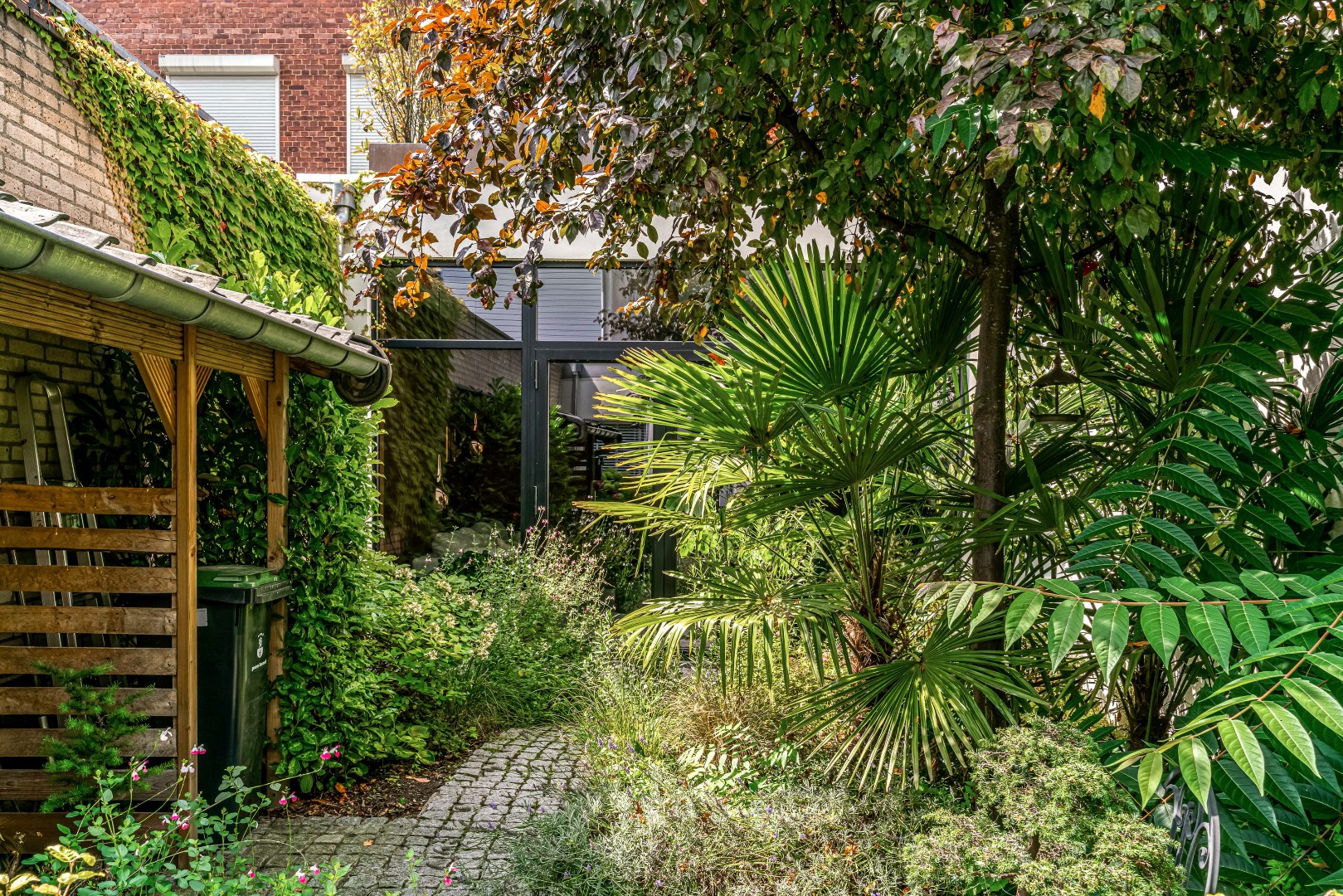 De tuin is een groene oase midden in de stad. Deze staat het gehele jaar prachtig in bloei, dus ook in de winter geniet je van een mooie kleurrijke tuin! Via de openslaande deuren in de woonkamer stap je direct naar buiten. Of je nu groene vingers hebt of juist houdt van een onderhoudsvriendelijke tuin, hier kun je alle kanten op. Helemaal achterin staat een sfeervolle tuinkamer met sedumdak. Perfect voor lange zomeravonden met vrienden of juist knusse wintermomenten met een warme chocolademelk.