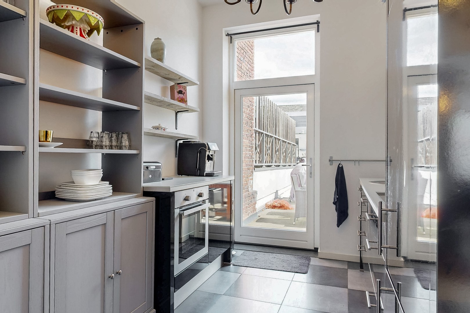 Op de eerste verdieping vind je de moderne keuken, compleet uitgerust met inductiekookplaat, oven, koelkast en vaatwasser. Hier kook je moeiteloos je favoriete gerechten terwijl het gezin of je gasten plaatsnemen in de eetkamer. Op warme dagen stap je direct vanaf de keuken het dakterras op voor een ontbijt in de zon of een diner bij zonsondergang.