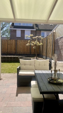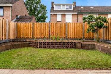 De tuin van deze woning is verzorgd en netjes aangelegd. Op het terras geniet je in de zomer van een drankje met je familie of vrienden. Onder de overkapping zit je heerlijk in de schaduw! Groene vingers? Dan kun je van deze tuin iets moois maken! In het verhoogde bloemperk kun je de mooiste bloemen en planten kweken, zodat het er fleurig uitziet! Tevens beschikt de tuin over een klein gazon, waar je niet veel tijd aan kwijt zult zijn.